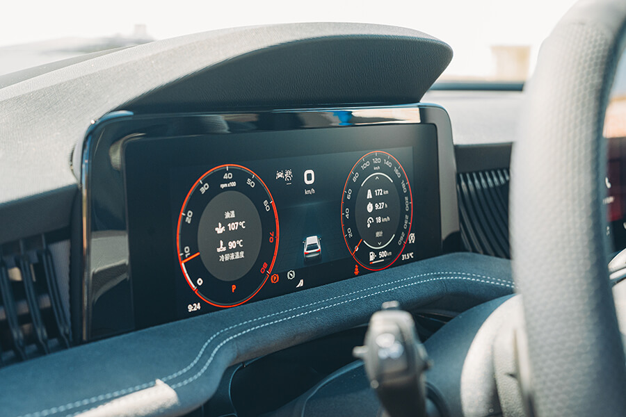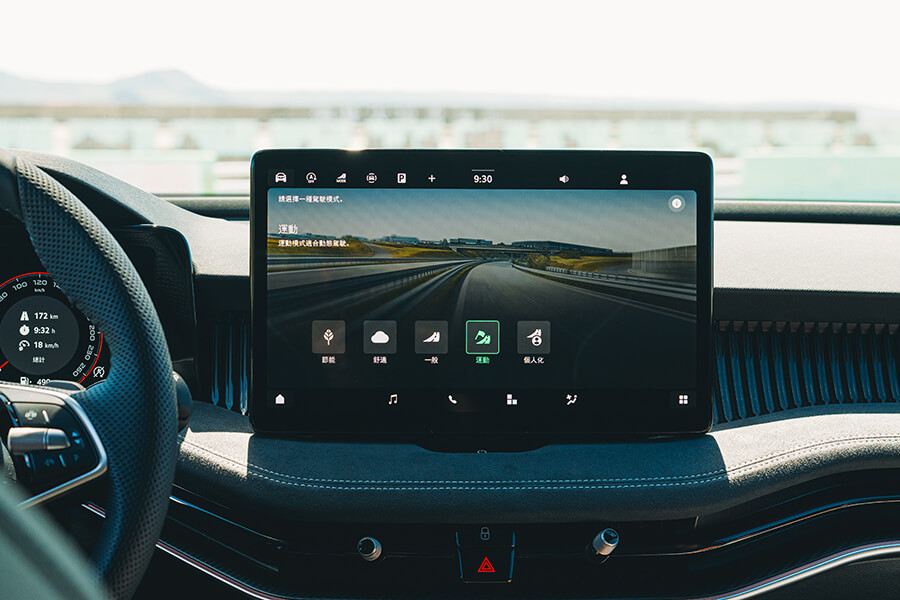 中控螢幕也跟隨近期改款車型一同採用13吋資訊娛樂系統,同樣以快速鍵與圖像化介面構成的優良操作感已無須多言,車載系統中甚至還包含車輛狀態、機油油位等實用資訊,唯獨環景系統在畫質、對位精準度上依然有待加強。簡約的中控皆以左右橫亙的方式以結合冷氣出風口的黑曜晶柱飾板、suedia麂皮質料、碳纖維壓紋飾板與車艙氣氛燈分層構成,對開的中央扶手與嵌有氣氛燈條、內藏折傘的門板依然以大量麂皮材質包覆,兩張一體式跑車座椅自然不會遺漏。這兩張前座椅還不僅止於此,除了擁有AGR認證的人體工學設計、8向電調/三組記憶、伸縮腿托等功能外,打開螢幕上的座椅選單,深層按摩功能還有招式百出的按摩設定,顯然跟這戰鬥感十足的車艙明顯不符,但我的嘴角為何依然高高揚起呢?好問題……