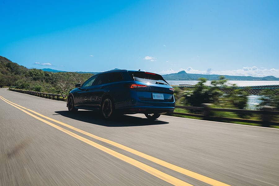 穿過南灣來到墾丁大街,原先的四線道路幅已經根據設攤與遊客需求改為劃設雙線道、並規劃臨停與人行空間,不只行人走起來舒服,開車行經此處的引導性顯然變得更好。不過我輩此行並無意展開墾丁物價調查,試車才是正經事對吧。有鑑於旅行車——無論被稱為Combi、Wagon還是Estate,最初始的用途無非是在往返火車站與鄉間莊園間發揮極大的實用性,於是雙手便轉動這只左右僅有各一圈且手感紮實的方向盤,往位處半島中央的高地草原開去。在好比C級道路的礫石路面上,我試圖切換行車模式,感受DCC Plus主動懸吊控制的功力,不料在這般羊腸小徑以低速前進的狀態下倒是沒有太大差別,就是感受到勁道十足的彈簧清晰回饋地面的碎石;反倒是一度試圖以較快速度通過彎道,在前輪出現輕微推頭後,這套4×4系統便透過液壓多片離合器快速調度動力支配,極端狀況下可將100%動力送往後軸、85%動力傳向單一輪胎的能耐馬上將車身行進路線導回正軌。