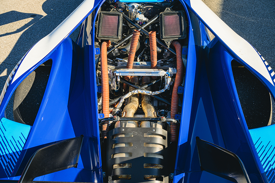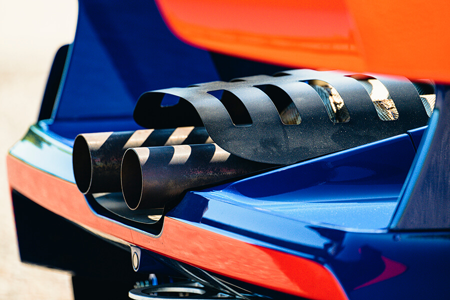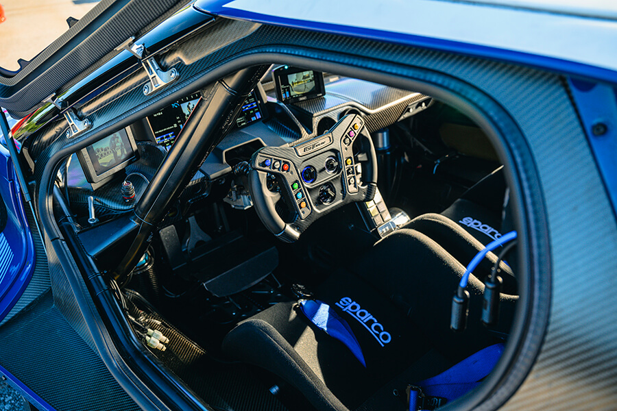 他們的信任感著實令我有點錯愕,那份為作品感到無比自豪和鼓舞的暖意卻也令我大嘆不枉此生,難道這就是有錢到一切皆有可能的感覺嗎?若然,億萬富翁的生活似乎比我所知還要美好千百倍,豈不惱人。「這些輪胎大約要用一個圈達至工作溫度。」Scott繼續說明:「之後就可以用最佳狀態跑上兩三圈。」牽引控制和ABS的介入程度已經設定妥當,動力輸出則調整至中級水平。換言之這副容積較大的V6眼下大約可以產生700hp(應付這片場地綽綽有餘,Scott更指出這個設定造出的圈速,往往比更霸道的800多匹設定還要快),而且車上沒有離合器踏板需要操心,車手只要拉一拉換轉撥片就可以進入一檔,之後按下方向盤近在右手拇指旁邊的黃色按鈕即可開步走。