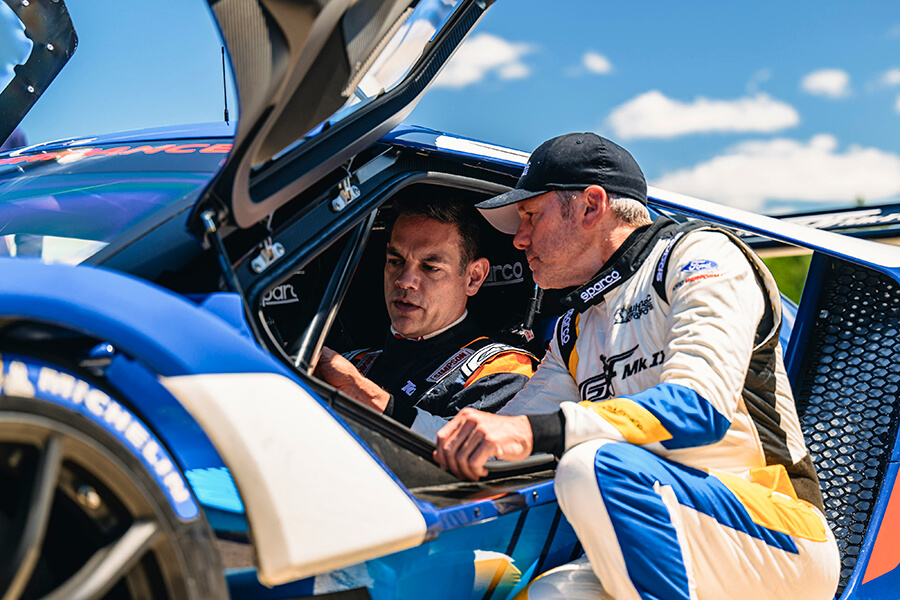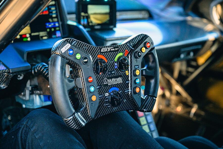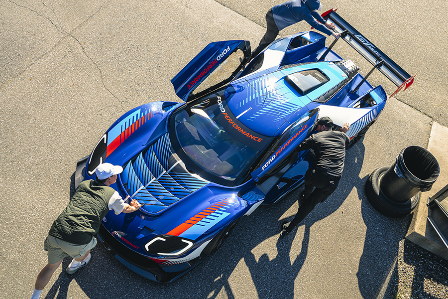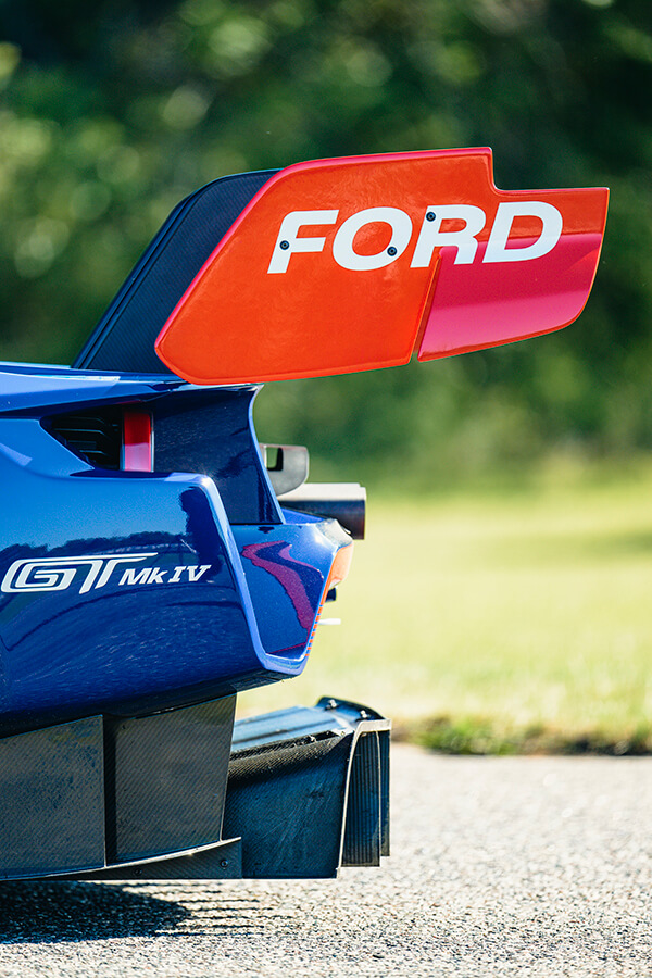 這部GT是Ford Performance和Multimatic合作的成果。這兩間公司的關係非常深厚,我們昨天在多倫多參觀福特Mustang GT4從光禿禿的車架化零為整時,便搶先一睹了同樣與Multimatic聯手開發的準投產型Mustang GTD,還順道鑑賞了準備好送交買家的Bronco DR完成品。Bronco DR是即買即用的沙漠賽車,原裝規格足以應付Baja千里大賽。看著這種越野巨無霸與車身高度幾與膝齊的Mk IV共處一室,某程度上已經看得出Multimatic的工程技藝何其精湛。事實上這間公司還負責製作Aston Martin Valkyrie AMR Pro和賓士AMG One,為保時捷963 Hypercar計劃供應車架一事則提供了另一個透露其實力的可觀線索。簡而言之,這部GT Mk IV具備蓋世大俠的血統。