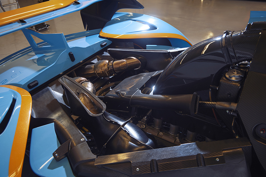 Solus還將專用的5.2公升V10當作車架承力樑(引擎由麥拉倫和Judd共同開發,生產則交由後者負責),情況就像……不用我說大家都知道吧。選擇引擎的過程可謂峰迴路轉,話說Vision GT當初的概念是用麥拉倫雙渦輪增壓V8配搭前輪電動馬達,可是計劃進入現實化階段後,焦點很快便從道路適用性和混能技術轉移到輕量化和線性反應之上。