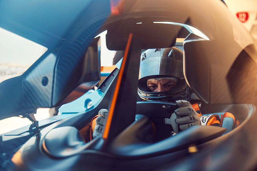 方向盤仿照諾里斯的F1用品,前後滑動的駕駛艙蓋開關方式類似噴射戰鬥機