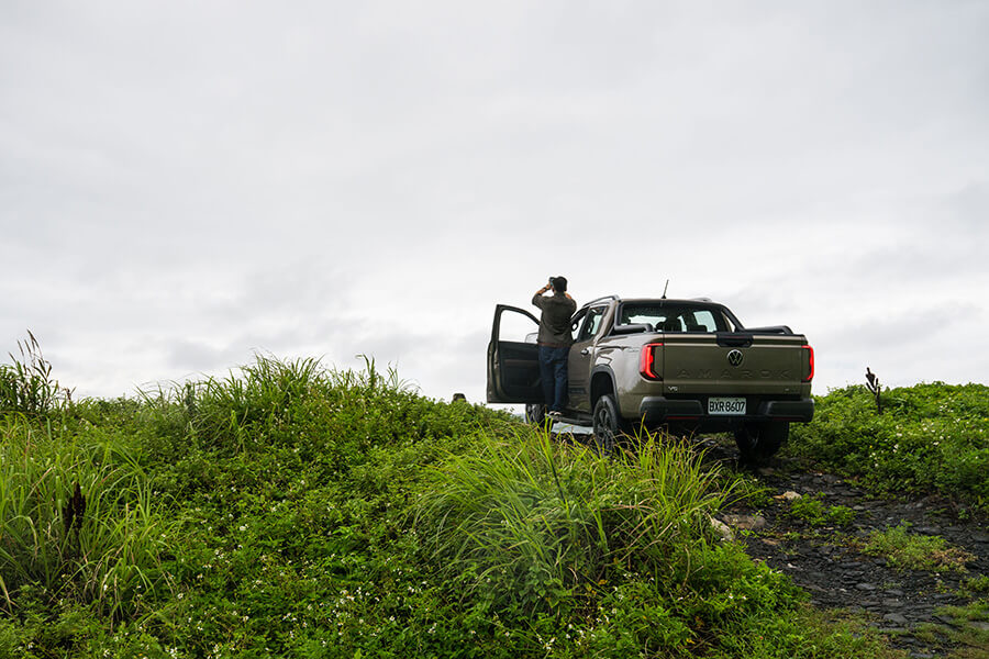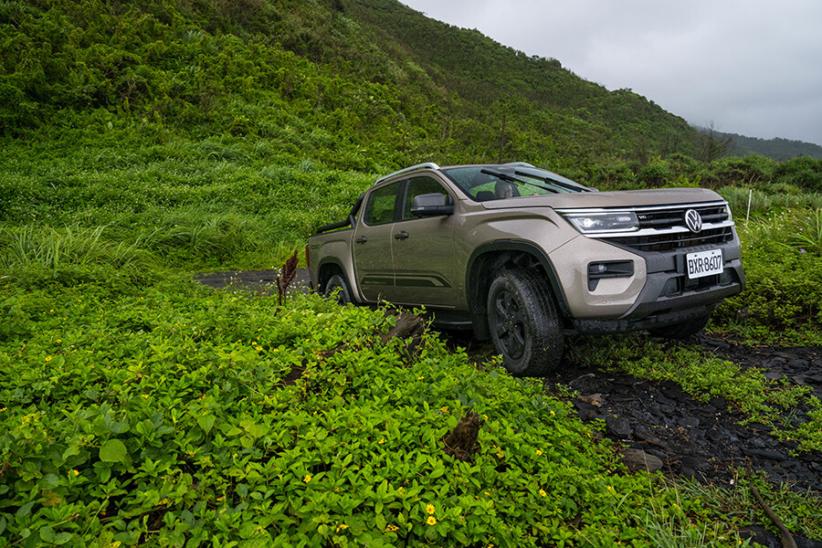 結束了體驗討海人生的一陣裝忙,我們沿著林投樹的妖嬈姿態來到海邊。Amarok本就身懷3.0 V6柴油渦輪引擎,64kgm扭力的舉重若輕就好比郭婞淳拎著Burberry包包出門逛街;更何況4motion四驅大法可在2H/4A/4H/4L模式間隨意遊走,驅動模式旋鈕下方就是差速鎖、陡坡緩降與循跡開關等控制鍵隨侍在側,在砂、泥與石塊交雜的崎嶇路面爬上爬下、衝來衝去好收錄幾張幾張裝腔作勢越野畫面的同時、車內實則一片寧靜祥和妙趣橫生、又不至被震得七葷八素,腳尖輕點就能憑藉飽滿扭力攀上土丘,手中方向盤依舊連半點修正都顯得多餘,車上的驅動模式甚至還停留在4A自動,防滑/泥濘/砂地/雪地/拖曳等多種模式甚至未派上用場吶!