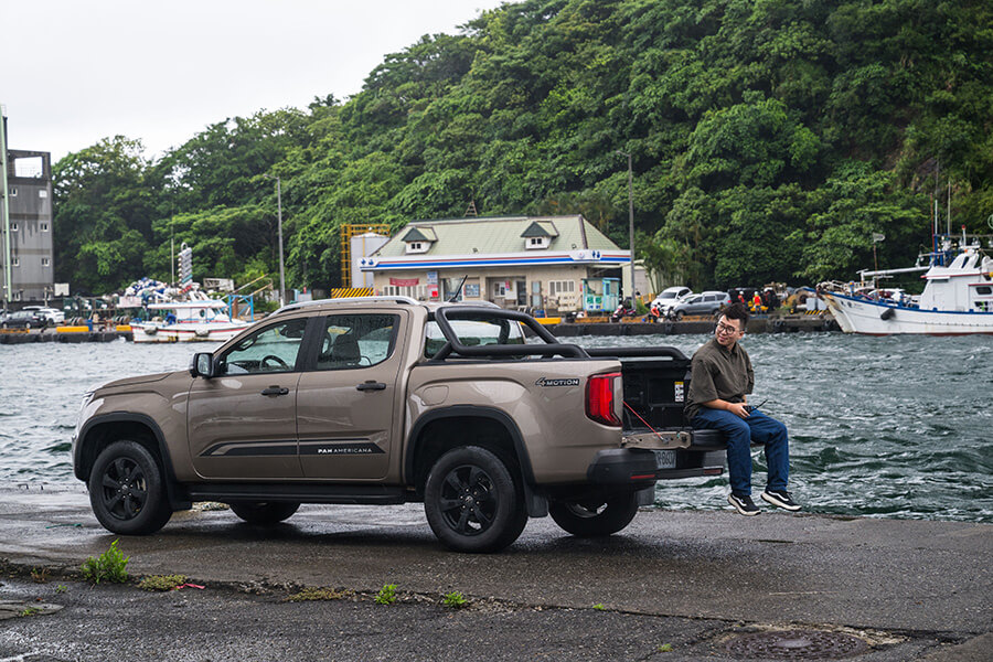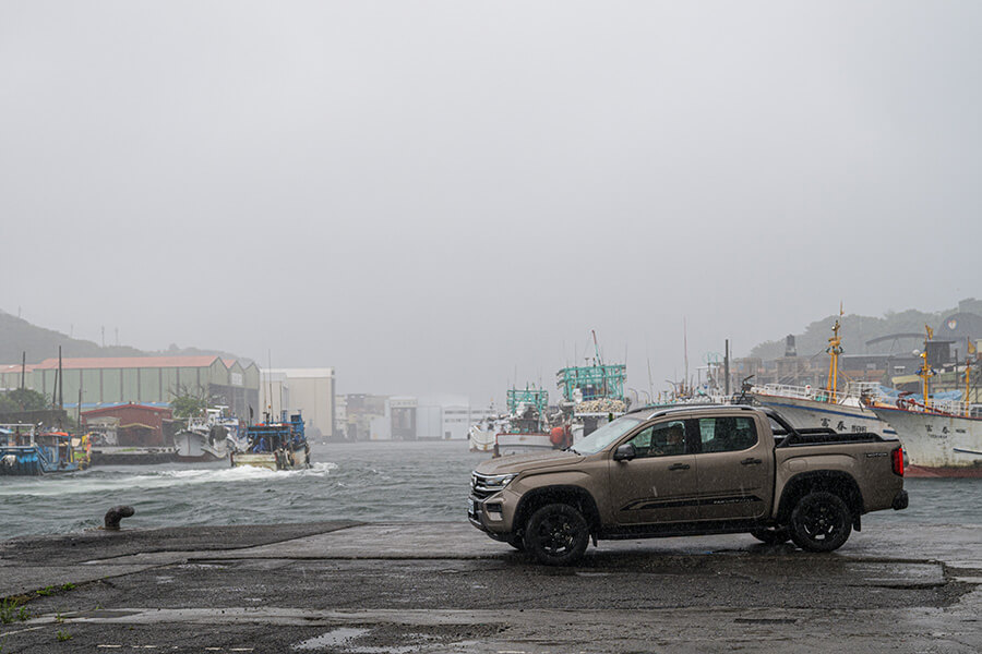 國道五號一下就開到見底,蘇澳,一個臨海小鎮,三面環山的地形讓此地擁有國家級港口條件;一旁地形開闊、底部平緩的海灘亦成為海洋活動的絕佳場所。由於環境使然,這裡果然充滿各式pickup四處爬來爬去。這些皮卡存在的目的是為了衝浪?工作?不知道,但此時外頭便陰風陣陣、烏雲從山的另一邊翻騰起來;過沒多久,到處都下著彷彿要淹沒世界的大雨。我隨著一一進港躲避風浪的魚船來到南方澳大橋下,即便早已過了上岸與拍賣的尖峰時間,正值黑鮪魚季的漁港拍賣市場依舊擺放著許多今日戰果;一棧板一棧板上過磅、分切好的黑鮪魚正散發著低溫保存的冰霜氣息,準備由堆高機裝載上車。Amarok的後方貨床在前代本就有突破一噸的載重能力,現在則增至1160kg、拖曳能力亦自三噸整向上推進至3500kg;帶有防刮表面處理、6組固定扣環、照明燈與電源輸出的車斗空間依然得以容納一板歐規棧板,無分橫豎。至於台灣常用的美規棧板,在數字上顯然亦能正常放置、再輕鬆帶上那扇帶有中控鎖的尾門。
