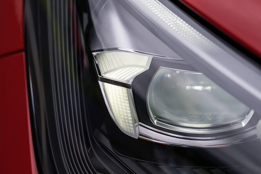 這一身圓滑的低風阻全新外觀還只是Tiguan改變的開端,實際上在車頭中央的開孔亦採取百葉窗機構控制啟閉的主動式水箱散熱調節器,能在車輛溫度較高時開啟以利散熱、在暖機及高速行駛時則維持關閉來分別達到控制溫度、以及降低巡航時的空氣阻力之效。新車橫貫左右的車頭日行燈或許快速吸引你的注意力,好戲實則藏在左右燈殼裡:比起蒼蠅複眼還要更精密、單邊就多達19,200顆的HD Matrix矩陣頭燈,不只能在車輛啟閉時與尾燈一同上演燈光秀,行駛中更能自動自發根據市區、鄉村、高速公路等環境做出遮蔽、防眩光、沿著車道邊線照出矩形的車道導引、在施工時透過額外光條提供軌跡輔助;在越野模式下,這組智慧頭燈甚至能盡可能地穿透樹林與障礙物,達到最大照明效果。