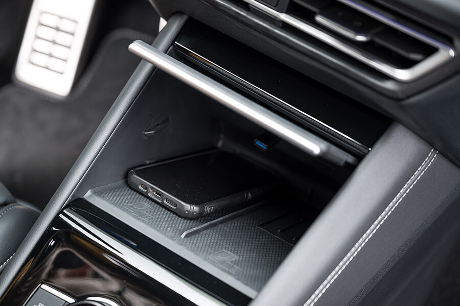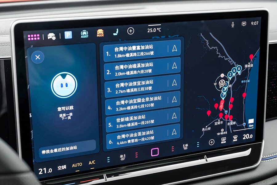 畢竟聽完這些描述頂多就是讓你點點頭表示確實厲害,但第一次打開車門後所看到的景象勢必會讓人雙眼一瞪、嘴巴一張且面露驚訝神情。上代便有的數位儀表這回以更簡潔的矩形邊角出現在眼前,中央螢幕也採用與新一波車款造型近似的15吋式樣(280 eTSI Eegance為12.9吋),裡頭整合了造成新一代Tiguan如此姍姍來遲的原因,沒錯,是福斯特別為台灣市場單獨準備的中文智慧語音助理。這套系統整合了中文導航以及車上琳瑯滿目的操作設定,溝通起來的體驗顯然可以更加自然口語化,對於特定地點的解讀倒還是偶有雞同鴨講的情形,需要沿著語音助理的互動脈絡順藤摸瓜,誘使語音助理給出你想要的搜尋結果。真的嫌麻煩的話,Tiguan還是有無線CarPlay的支援,上車前先查好目的地後,上車只要將手機往鞍座的雙15W無線充電槽(可設定關閉充電)一擺就能高枕無憂。
