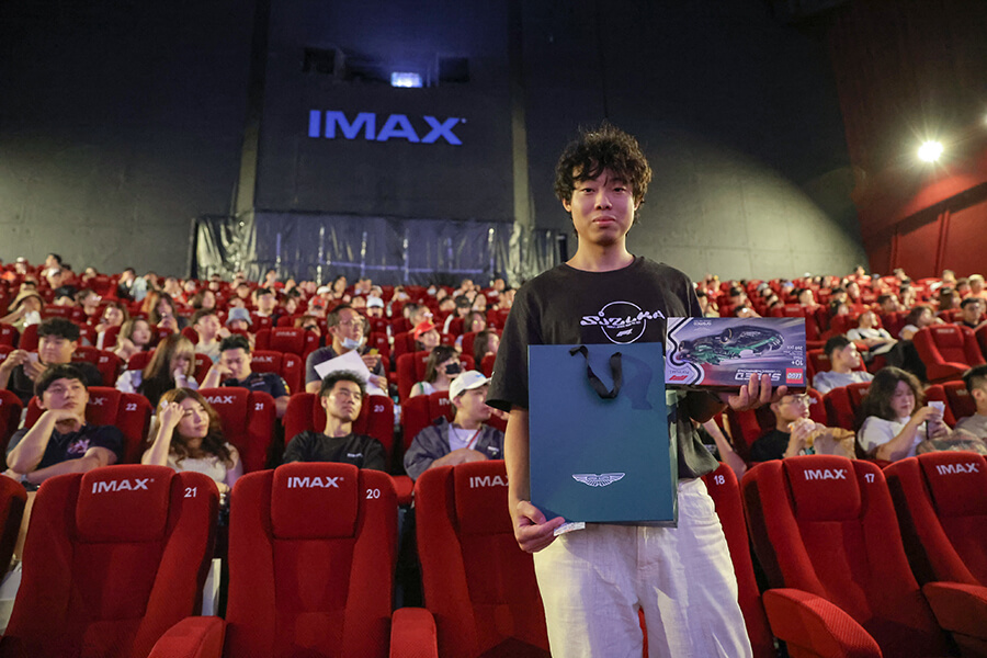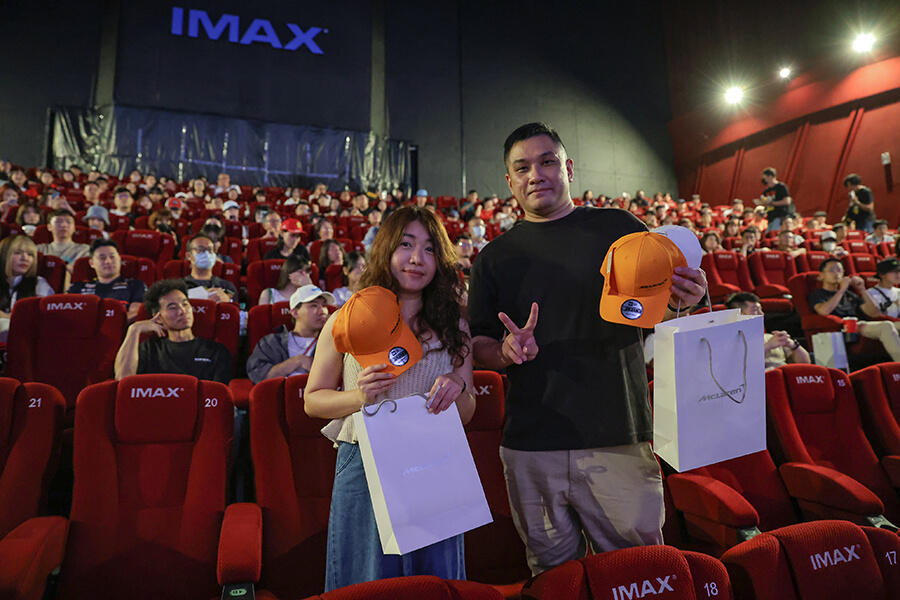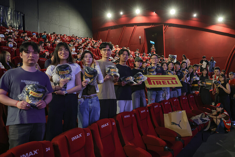 電影映畢後眾人尚未散去,而是直接玩起了抽獎,在倍耐力、麥拉倫、馬丁、PUMA、Mobil 1……等多方的贊助之下,現場陸續抽出帽子、樂高F1模型、賽車鞋、賽車模擬器使用時數……而且最後的大獎竟然還是年底的F1新加坡站門票一張,好羨慕嘛。至於為何要舉辦這場活動?除了不外乎大家都有一顆喜愛賽車的心外,主辦人能花表示其實這天其實是他的生日,而他的生日願望是找大家來在這個偌大的IMAX影廳裡玩波浪舞。好啊,原來還是因為私心使然哪……。