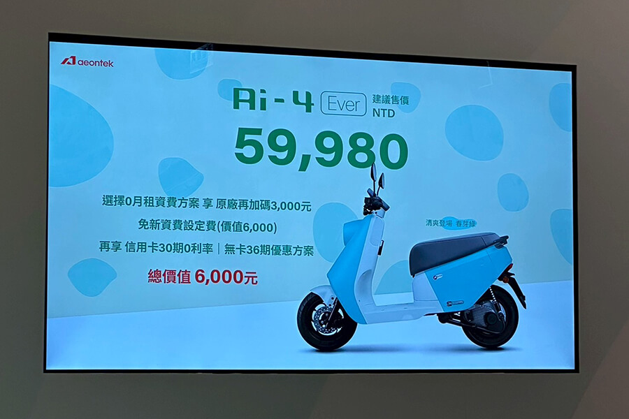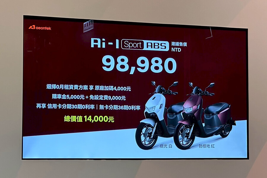 - Aeontek 宏佳騰動力科技:即日起至 2026/7/8,購買全新上市Ai-1 Sport ABS 享設定費全免、車價現折 $5,000 元;以及 7/15 至 2026/7/8 選購 Ai-4 Ever 設定費全免。