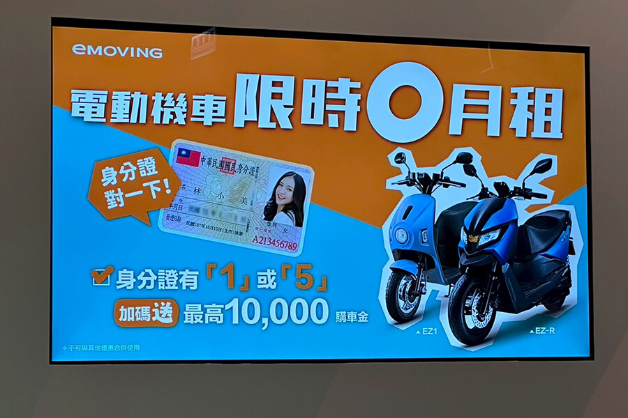 - eMOVING 中華電動二輪:即日起至7/31,購買 EZ-R 或 EZ1 車款,可享設定費全免;身分證字號有「1」或「5」,購買 EZ-R 加碼送最高 $10,000 元購車金。