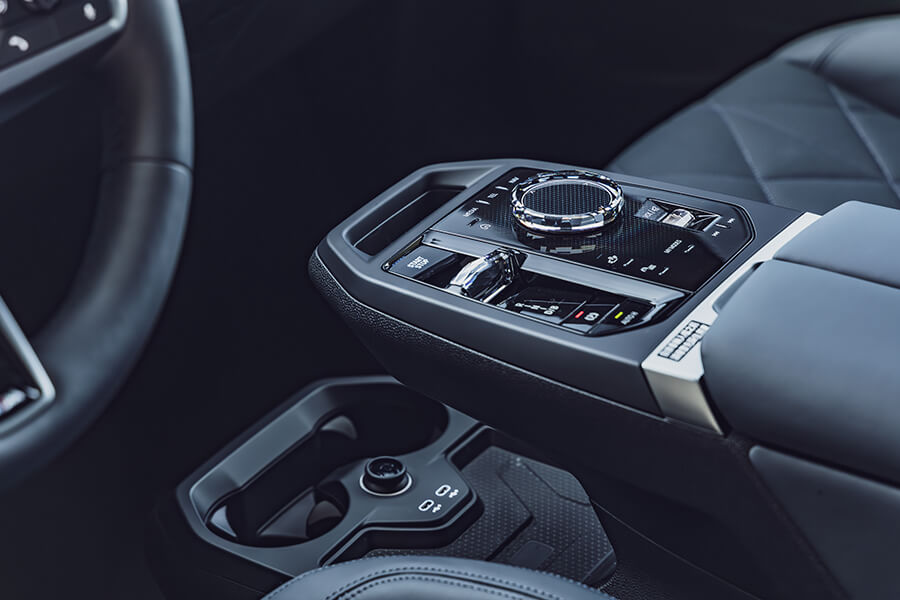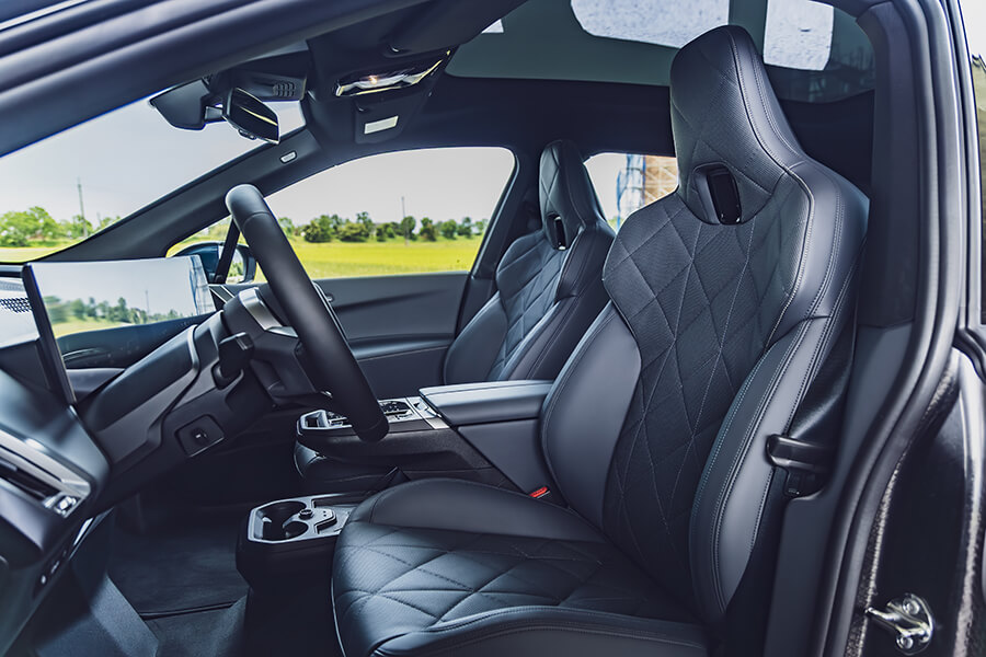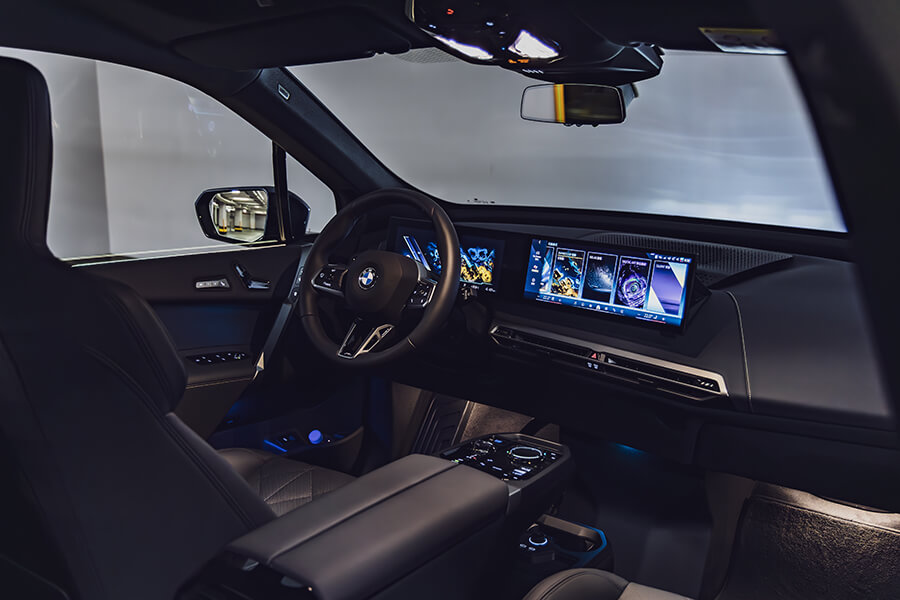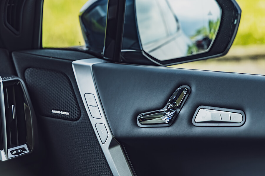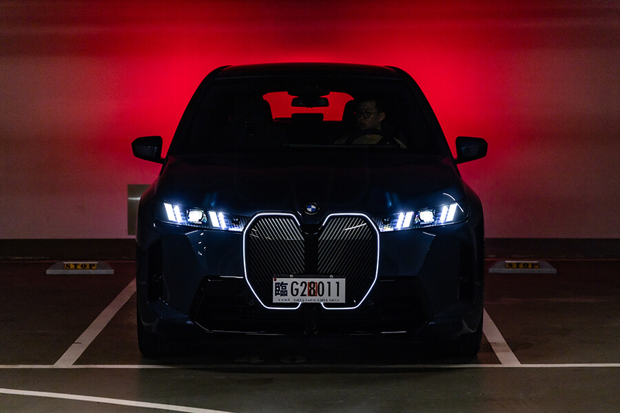 至於此刻我與攝影阿加所身處的車室裡頭則已接受M Sport套件的洗禮,三輻方向盤、霧面深灰飾條還有水晶套件下帶有菱格紋線條點綴的亮黑飾板是可以一眼確認的升級項目;座下兩張M多功能跑車座椅據說也強化了肩、腰、腿部等處的包覆效果。要是你想要,還能將座椅與整片控台改以M Alcantara麂皮佐Sensatec透氣皮質包覆,讓視覺跟止滑效果再上一層樓。我倆在開闊且隔音表現優異的座艙中井水不犯河水地各據一角、再一一打開通風座椅、按摩功能與高低音與空間感皆表現得有聲有色的Harman Kardon音響,我倆甚至還沒踏上試駕路程,這部iX就已經把車內乘員伺候得服服貼貼。