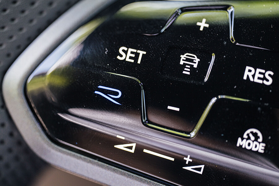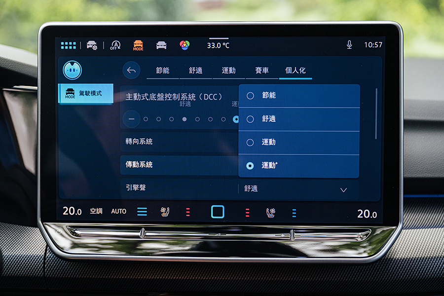而且光是我在開過來的路上,一路還只在舒適與節能兩模式間打轉咧,不過一旦轉動那緊緻線性幾無虛位的方向盤,手感之清晰仍就像投籃遊戲一樣,隨舵角在眼前路面上劃出一條十足把握的攻彎路線;仍富路感的DCC加上輕含油門就有綿長的動力輸出,都能提早感覺到它所帶有的特異功能,只是……一般車型都改掉的電容按鍵,怎麼還在這張方向盤上?