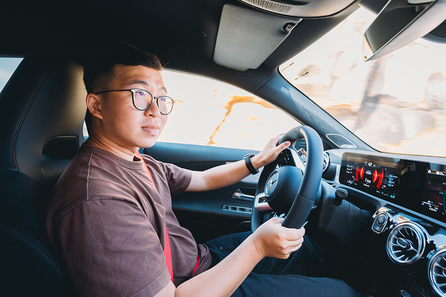 已經忘記用這樣激情的方式掠過了多少彎角,若非輪胎與煞車隨著時間慢慢顯現疲態,我想我能就這樣享受這樣甜蜜、刺激又不至兇殘到反咬你一口的駕駛過程一路開到太陽下山。在從這純粹沉浸在駕駛樂趣的天堂逐漸返回尋常俗世的過程中,你能切回較和緩的駕駛模式、打開齊全的輔助駕駛,然後善用 MBUX多媒體系統、Burmester 揚聲器偕同杜比環繞音響的餘音繞樑,在絢麗的環艙燈光中,享受舒適且精緻的移動過程。不過在這之中最值得一提的竟是那組運動化懸吊,在稍早擁有絕佳支撐表現與路感回饋的同時,回到市區道路後竟保有不錯的濾震能力,座下那張腰部支撐表現不錯的跑車座椅,在歷經一天的駕駛後亦維持我與攝影球褲倆一身清爽而無絲毫負擔。