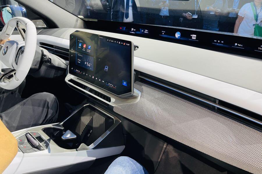 三.進到車內,最吸引人的就是全新的 iDrive X整合介面。中控是一塊 17.9 吋的大螢幕,再加上橫跨整個擋風玻璃的 Panoramic Drive抬頭顯示,資訊直接投射在視線前方。BMW 把操作邏輯重新定義,介面更直覺,互動更自然。