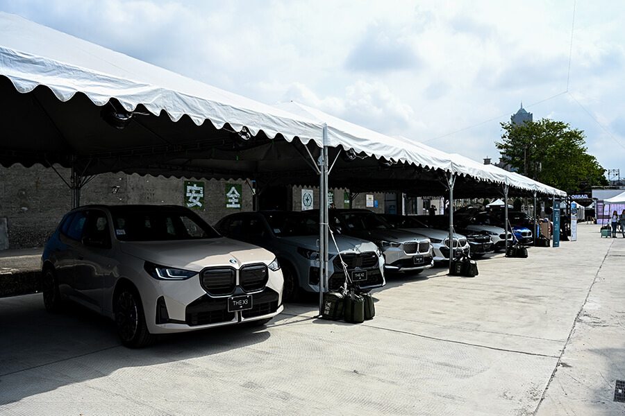 BMW所貫徹的周到程度還不僅於此,進門後拐個彎,便是高雄汎德帶來成排的汽車展示,從純電的iX1、i5,到SUV車型X2、X3,乃至於1、2、3系列與Mini Countryman,甚至還在對面設有原廠精品攤位,凡造訪此地者,都有望在此將巴伐利亞價值補好補滿。