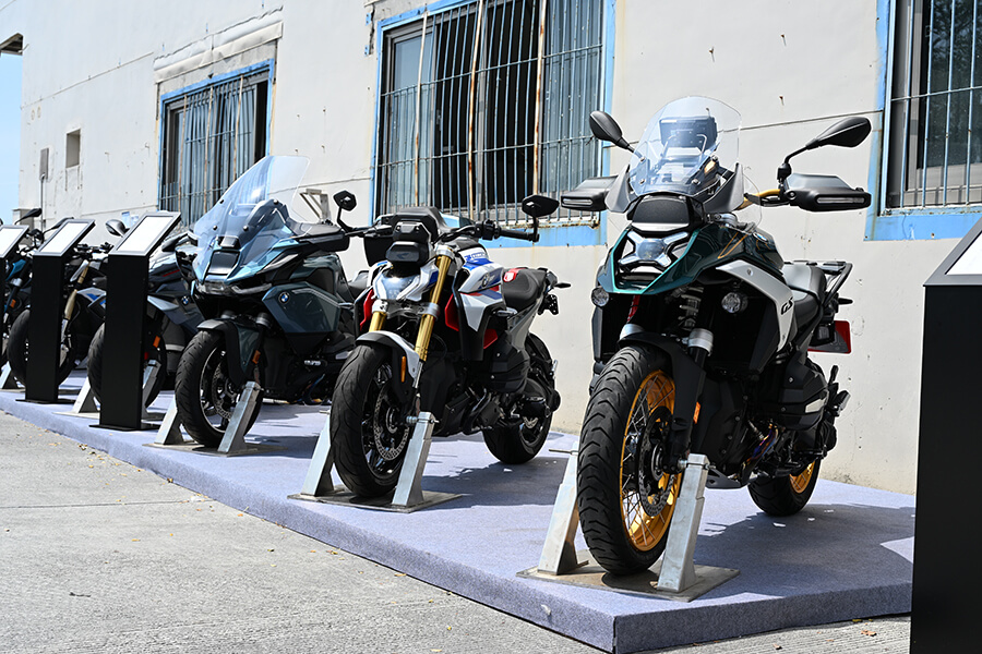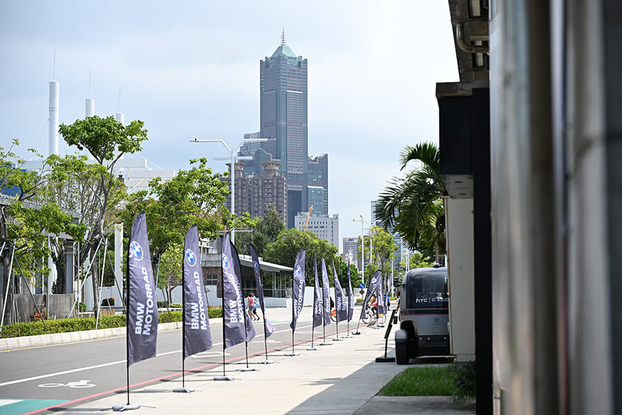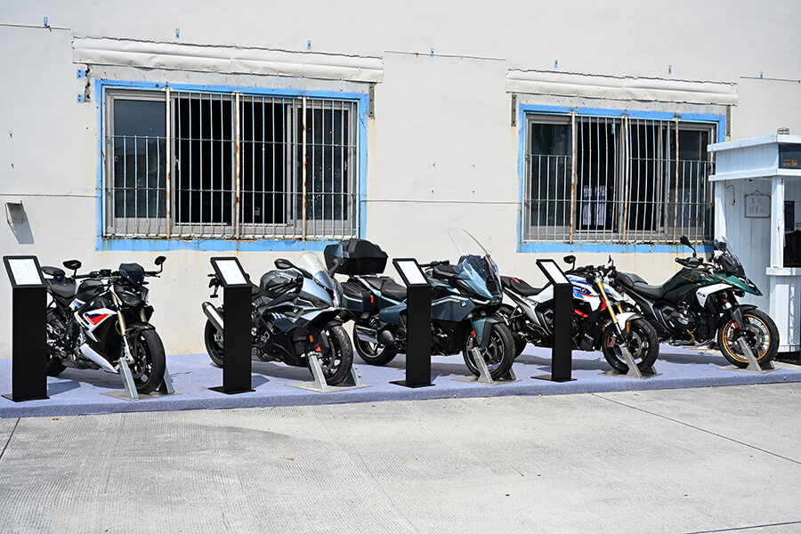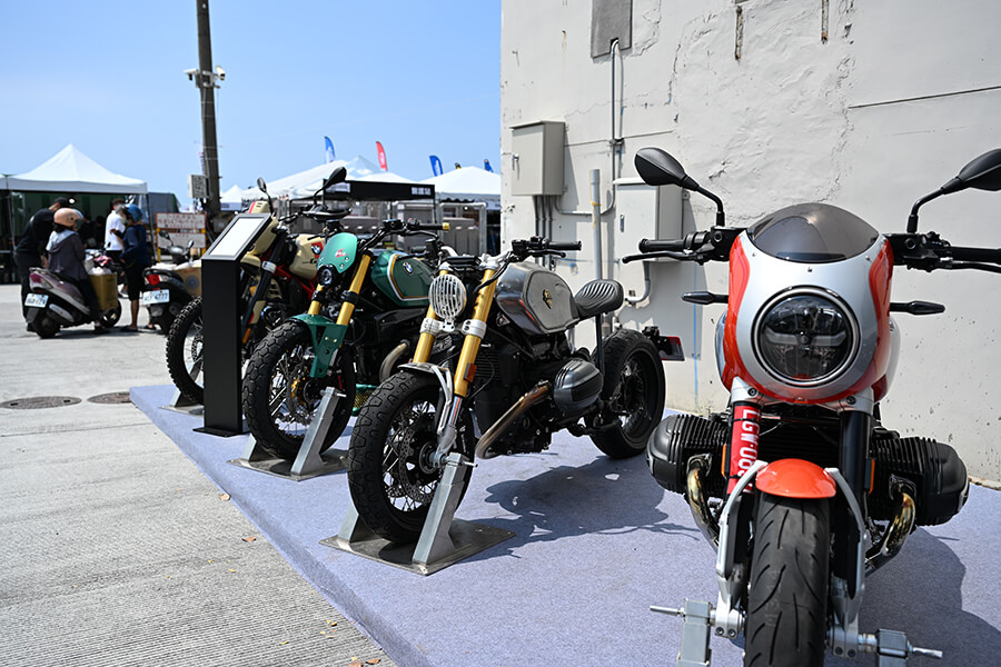即便時序已算是入秋,一早高雄的氣溫可真不是蓋的。沿著七賢二路跨過愛河,直走通過偌大的高雄港牌樓、再一個右轉穿過管制哨,一座座大港倉庫與遠方的流行音樂中心、85大樓構成一幅經典的港都風景。而這也是今天諸多BMW Motorrad車主們有志一同欲抵達的目的地。儘管大隊人馬差不多要午後才陸續抵達,我本著有神秘任務在身(任務內容待會揭曉)先一步到達會場,趁著空檔先到處都轉一番。你能看到在巨大的活動拱門下有所有最新車型一字排開,R1300GS、R1300R、R1300 RT、S1000RR、S1000R、R12 G/S……不僅如此,你還能看到在七月南港重機展時亮相、三部各自由不同改裝巨擘所精心打造的R12亦出現在展示陣容。對新車有點心動?對面就有提供多部試乘車的新車試乘區,BMW Motorrad果然周到……。