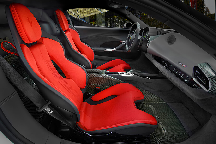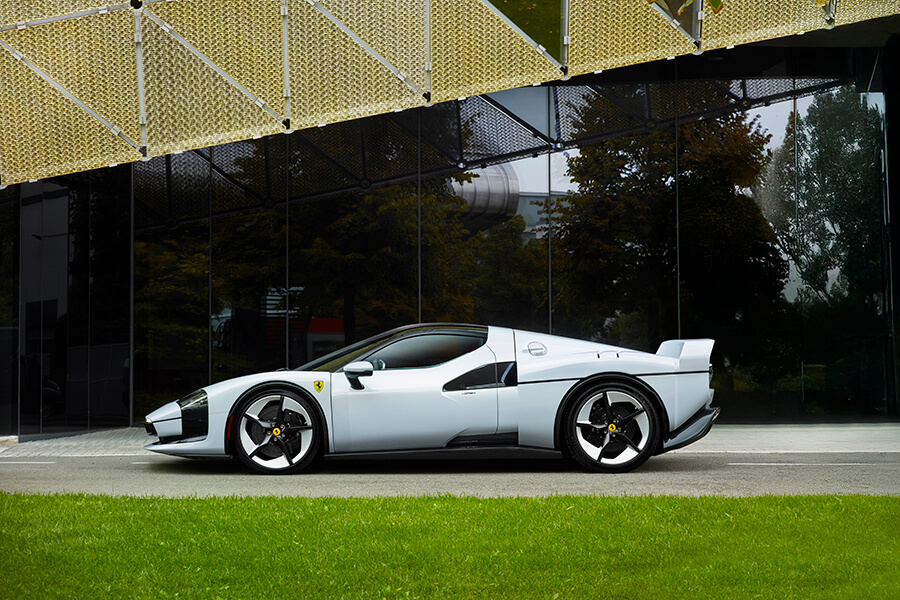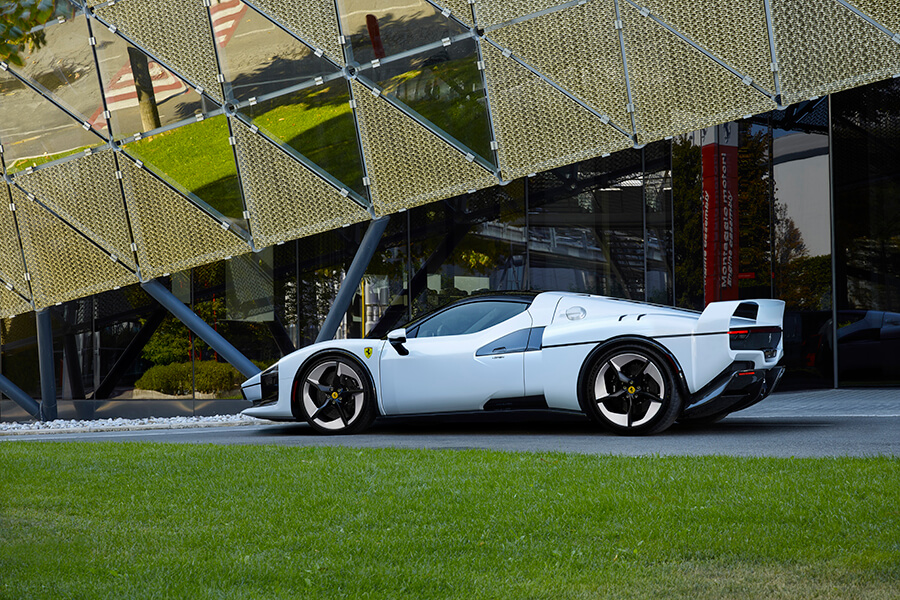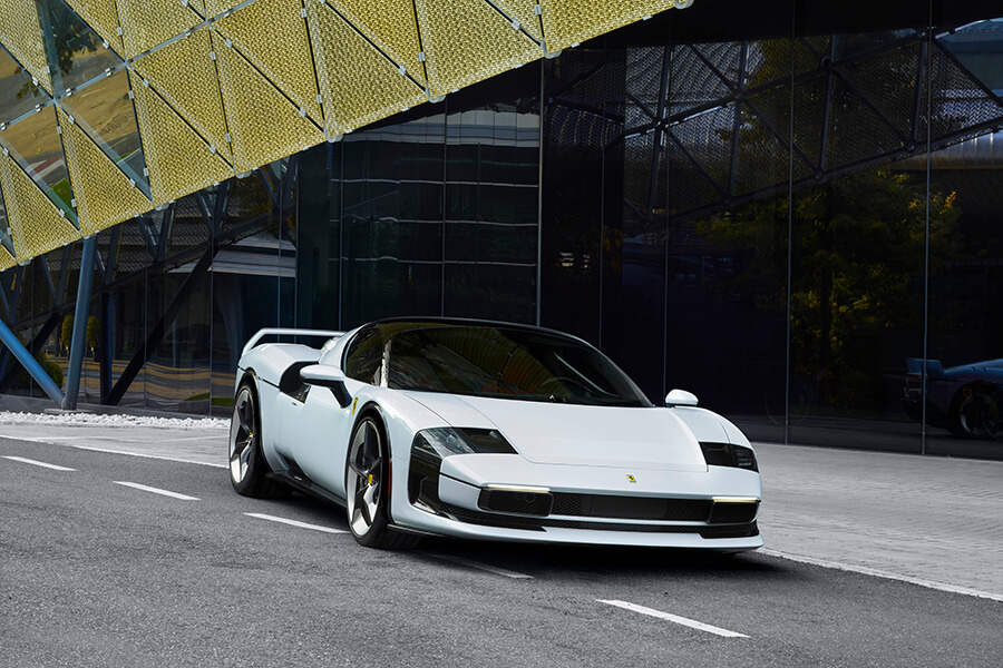 F40,這輛最後一款在Enzo Ferrari監督下誕生的車型已受外界追捧為顛峰之作,同時亦啟發了這輛SC40銳利的稜角線條。不過法拉利並不單複製貼上它們在80年代便已出現過的設計。在兼具方正與肌肉感、並且披上”SC40 White”的身型底下,是296 GTB 的底盤與動力:一具3.0升V6引擎、一些電力助拳、後輪驅動以及強勁的819匹馬力,0-100 km/h加速僅需2.9 秒的光景。