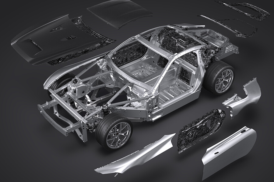 車身結構是豐田首次地採用了鋁製車身,甚至為求輕量化,在車身表面前後蓋、車頂與車門處皆採碳纖維材質部件,搭配車身其餘部分的合金材料構成全車外觀皮相。Toyota也不諱言地表示,此車傳承自上世紀60年代的2000GT及LFA的設計理念,儘管之後依然會再推出一款與LFA關聯性更高的Lexus超跑車型。