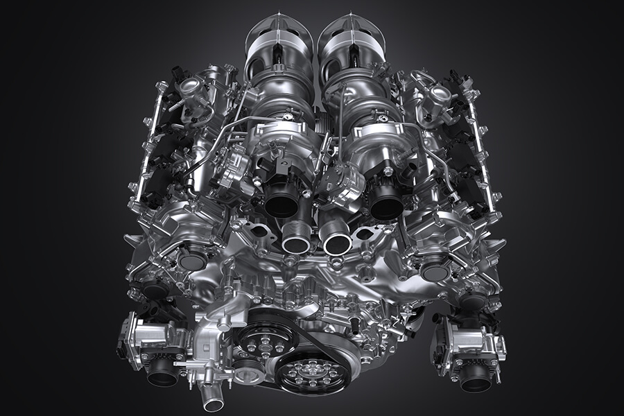 長長的車頭裡裝著一具4.0升V8雙渦輪增壓汽油引擎,採"HOT V"設計的兩顆渦輪,位置擺放在引擎的夾角中央,同時搭配一副油電系統,內含整合在八速自排變速箱驅動軸內的單電機。而變速箱也以濕式起步離合器代替傳統的扭力轉換器、同時搭配機械式限滑差速器,而變速箱內的馬達?則主要用以彌補加速與換檔過程中的瞬時動力損失。