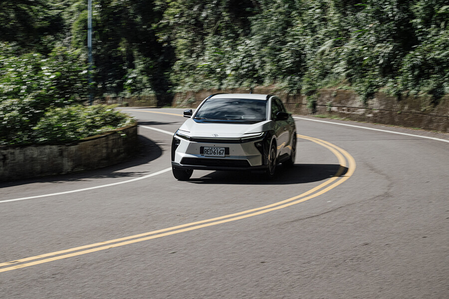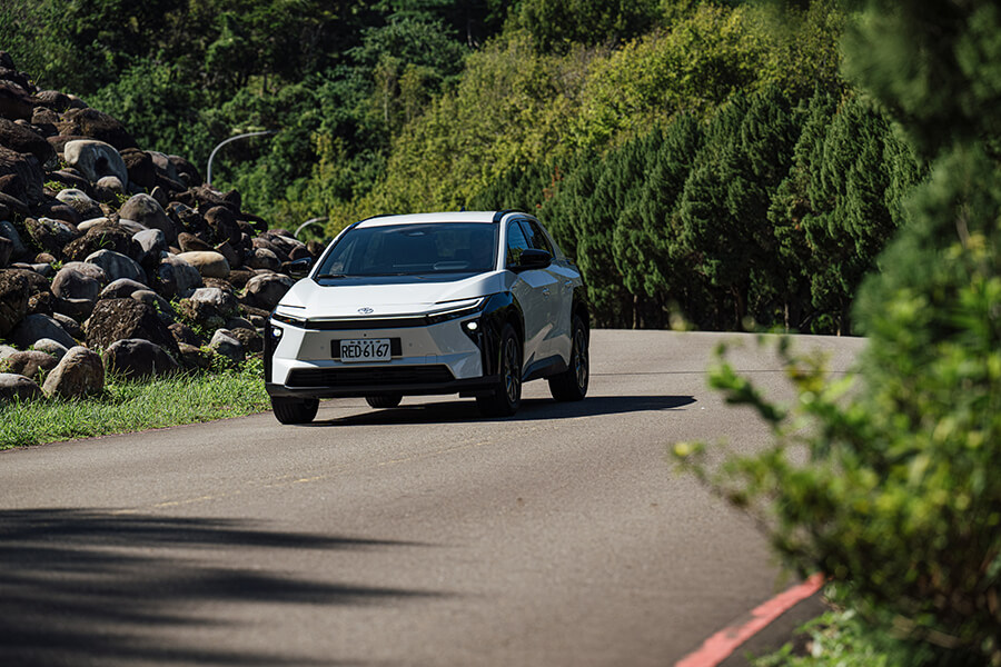 但我輩總是一摸上方向盤就會手癢的類型,也不管此車定位是否合於用來在操控上逞威風,沒有太多駕駛模式選項又如何,右腳一蹬就是往前衝。眼看彎角逼近,於是煞車一踩、方向盤一扭,我意外地發現這車在減速與進彎時的動態相當令我印象深刻,既沒有電動車常見那失速列車般難以掌握的減速慣性,拐頭入彎時的俐落程度也超乎預期。或許是e-TNGA平台加上後軸雙A臂的設定使然吧,車身重心感覺既低且集中、激烈操作下的側傾姿態亦被控制在一個合宜的範圍內,種種特點加諸起來造就了一部在山路間開起來竟十分有趣的純電SUV,而且當前方的驅動輪在帶著舵角加速時,倘若瀕臨空轉而臨近需要修正的情況,除了儀表上一路閃爍的循跡燈暗中化險為夷外,有時還會感受到手中的方向盤會協同動力限制,一同穩住度令輸出與車身動向。這或許對於追求操控自由度的駕駛來說會覺得未免也太雞婆,不過對於更多此車所面向的消費者來說,或許就會是相當受惠的輔助功能。