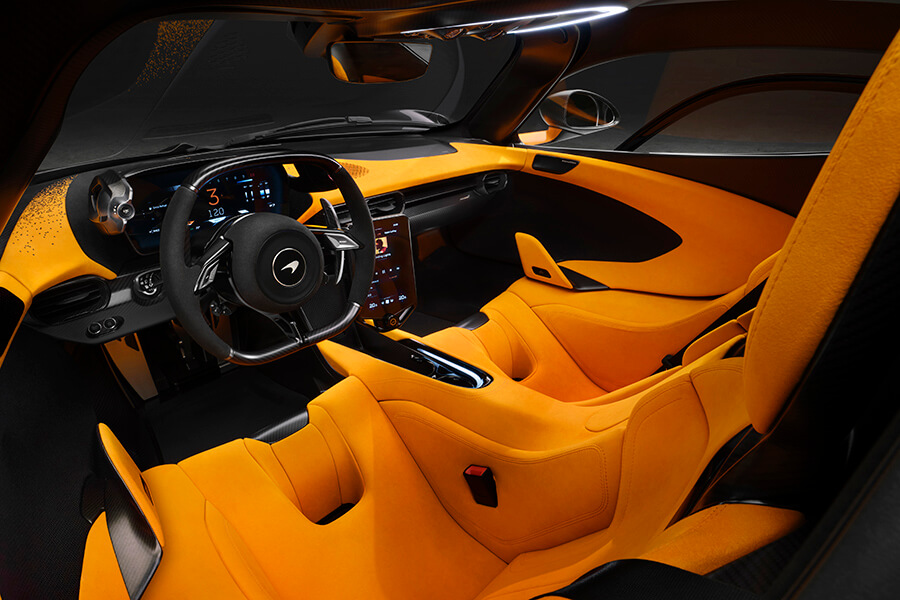 至於車門形式,這回McLaren放棄經典蝶翼車門而採用鷗翼車門,純粹出於空力的需求考量,因為蝶翼車門的鉸鏈位置會阻礙前輪拱的排氣效率,改成鷗翼門能解決這個問題的同時,還能提供額外100毫米的迎風面積而獲得更好的冷卻效果,散熱器尺寸亦獲得控制的同時,乘客上下車的姿勢也更為輕鬆自然,並成為W1視覺呈現的一大亮點。