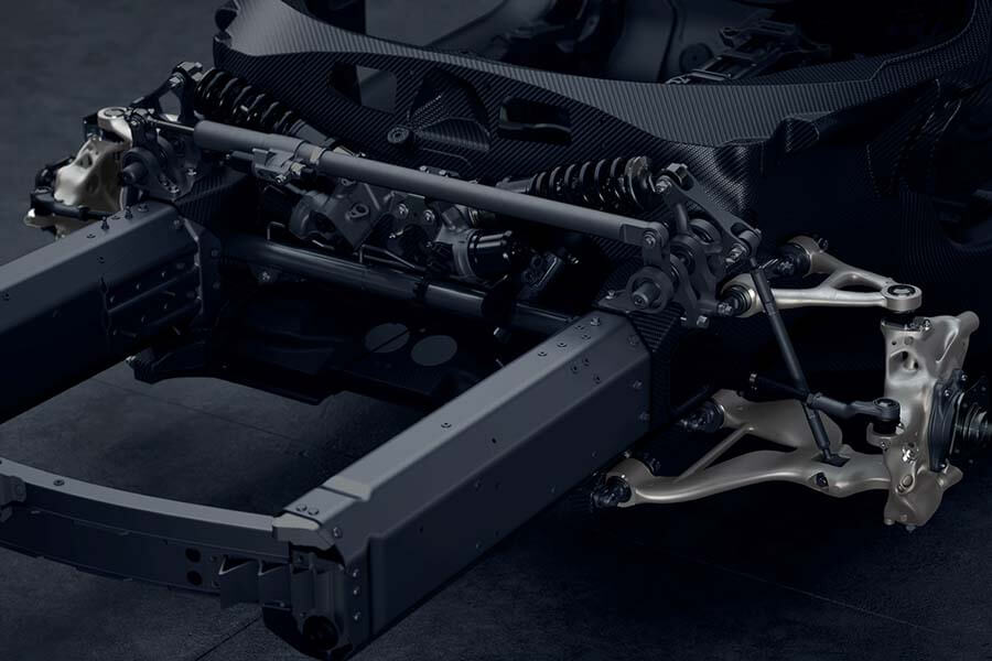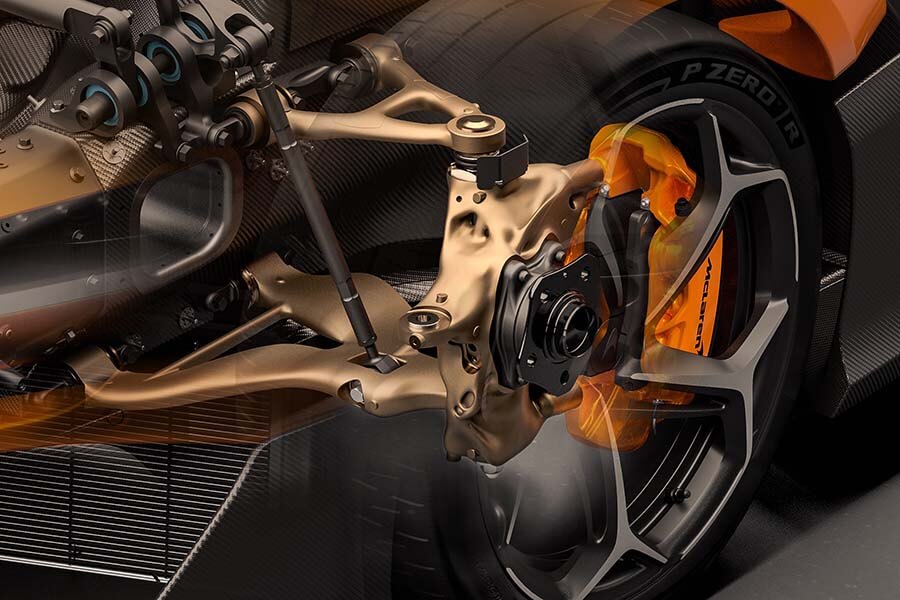 Heather:這套系統是延續過去的技術概念而不斷革新的成果,若就避震器控制而言,第三代是延續了過去的技術而改進的最新版本,不過硬體方面就是全然不同的概念,搭配首次運用在街車的推桿式懸吊結構,諸多優點之一是此懸吊型態能提供更好的氣流效能,藉由車頭底部的全新構型,將更多冷空氣導入後方的散熱氣口,所以將避震器放置在車艙內部,也是為了兼顧這些需求。此外,我們還用上與F1賽車相同概念的3D列印技術製作懸吊零組件,所以你會看到造型獨特的懸吊支臂,這些都是為了迎合W1所設定的目標而採取的極端作法。