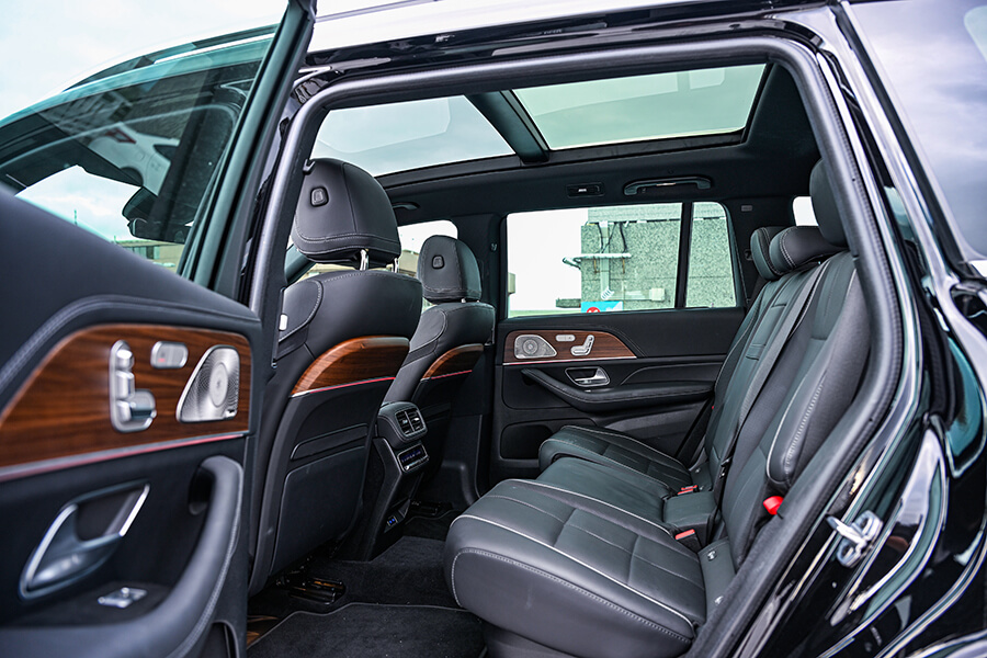 哈哈哈哈,沒錯,我們借來了GLS 450 4MATIC,一輛妥妥的full-size七座LSUV。光是三排座椅全數立起的狀態下就能吞下我與Jason倆的三天行李,要是臨時受到攝影團隊徵召充作拍攝用車,將後兩排座椅一倒,馬上就能成為奢華移動工作站;更何況平時後座不僅乘坐空間充足、還有左右獨立恆溫空調與電熱座椅伺候;在霧面棕色核桃木飾板、Burmester環場音響與五光十色(精確來說是64色)的氣氛燈簇擁下,一抬頭視線還能穿過大面積全景天窗看見頭頂的雲影天光。途中坐在一旁的 Jason 突然猛一顫開始懷疑自己器材的存在,還來不及反應時他已一溜煙跑到後排、舉起手上傢私說「找到了」。那一刻,我覺得自己開的不只是一輛大車,簡直像是把一幢豪華小房間開在路上了嘛。