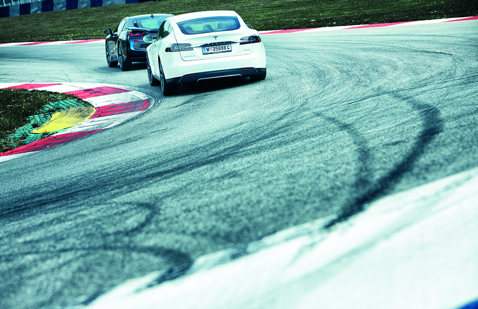 鑽進Tesla Model S的我並不是在賣Bacofoil鋁箔紙廣告,午餐菜色是正常的牛肉漢堡,而不是喬治歐威爾小說世界裡的維他命和靜脈注射營養劑。不過就其他方面來說,世上最好的電動汽車與可能是BMW迄今為止成就最高的驚世傑作i8雙雙現身於此,實際上就是未來世界的寫照。作為首批收到SpeedWeek邀請函的電動汽車(和售價低於7萬英鎊的混合動力車款),他們的出現決非為了沖銷人類留下的碳足跡,也不是為了平衡剛才戰鬥直升機與McLaren P1 GTR互相威嚇所激起的犯規聲浪。