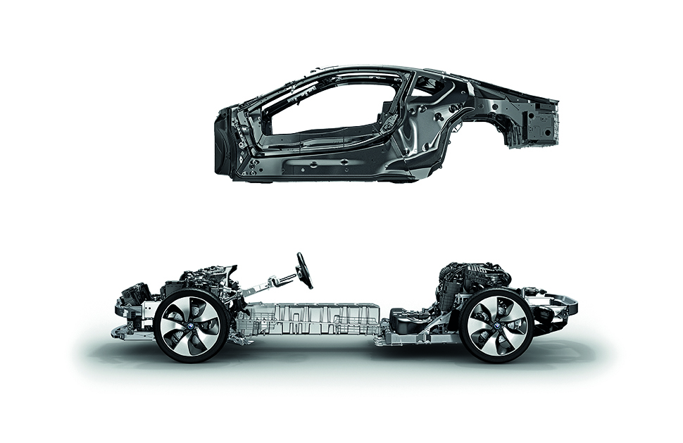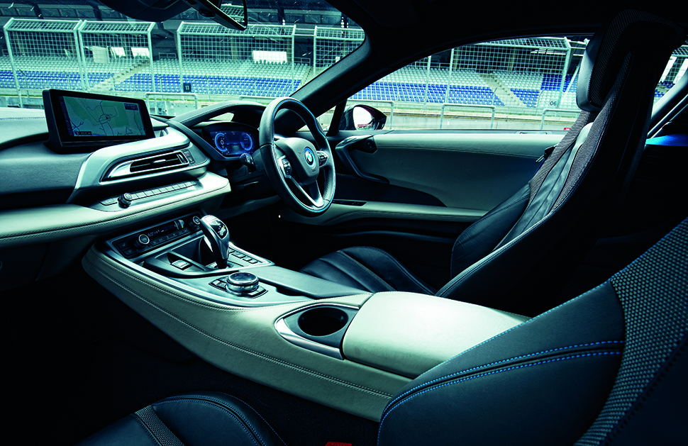 i8也使用鋁合金,電池卻藏進中央脊樑內,並以一個獨立於底盤的碳纖維艙招呼乘客。所以在石油危機後的世界,駕駛說不定會因禍得福,可以做出更驚人的彎速,不幸中的大大幸!
