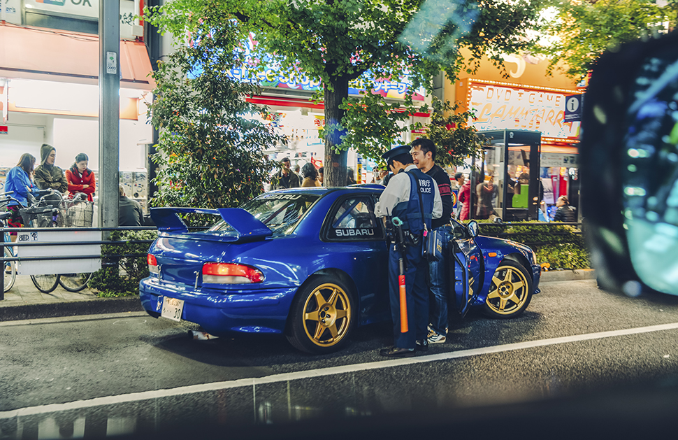 透過Junya的翻譯軟體簡單討論一番和確定駕駛上有甚麼必須注意後(特殊賽道常用的手煞車基本上無用武之地,實在可惜),我便利用那個有點易碎的離合器耦合一檔,繞過街角走了不過30英呎就見到一些制服非常醒目的警察揮動戴著白手套的手示意我們停靠路旁。接下來Junya和對方進行了一場似乎十分嚴肅的長時間討論,其間甚至要填寫一些表格。東京交通最繁忙的時段,從來不是掂量WRC賽車的最佳時機。這天豈止不宜,簡直就要變成一場惡夢。