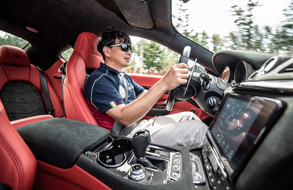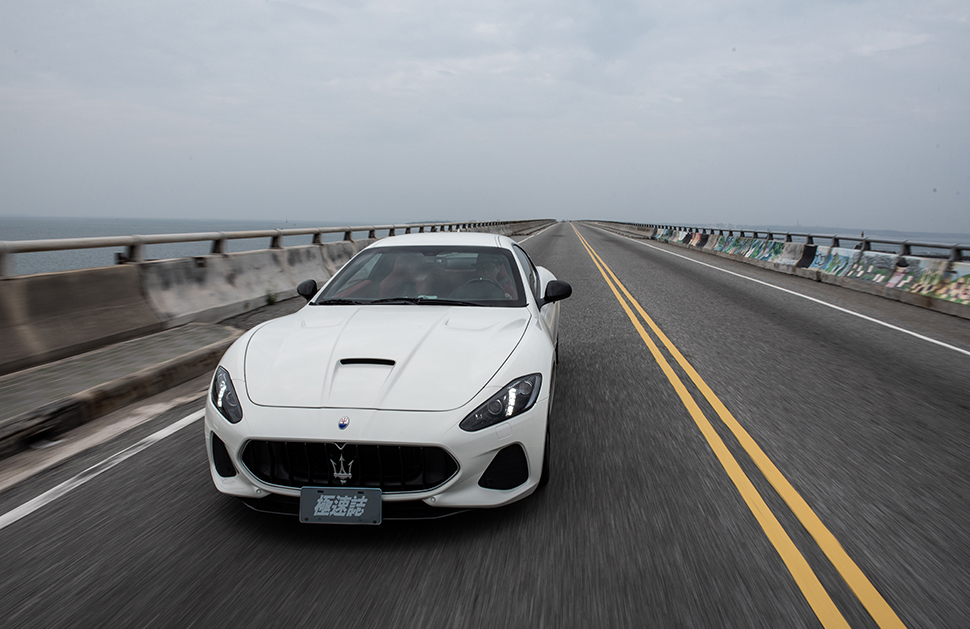 回程終於換我開GranTurismo MC了,雖然早在去年已於義大利伊賽奧湖交過手,相隔一年多再度重逢更是倍感親切,出發的同時順勢按下Sport鈕,MC專屬排氣閥門讓瞬間炸裂的高壓廢氣宣洩而出,繼而信手拈來降至二檔油門大開,V8馬上運勁爆出十成內力,轉速錶指針應聲一彈直逼7200rpm紅區,這令人銷魂的V8音浪讓整段203線隨之風雲變色。在多彎山區路段,硬橋硬馬的懸吊讓轉向回饋更直接,以扎實馬步配上氣勢如虹之姿擺平每個彎角,每次出彎一逮到機會就加足油門誘發V8引擎咆哮,在這段彎路上大顯英雄身手。但我也必須提醒各位,這段道路的外側只隔了一道厚度僅十公分的水泥牆外就是一落千丈的懸崖,這段旅程雖然精彩又痛快,但車速都還在安全的容許範圍內,別只顧著享樂而忘了該注意的事。