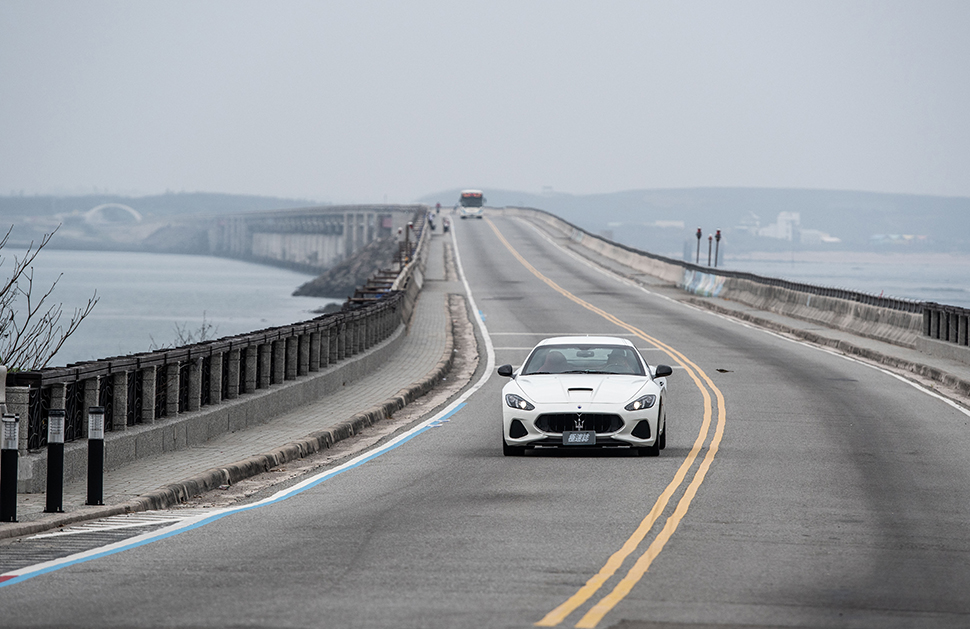 經過前一晚海上花火節的浪漫洗禮後,第二天跟著我們上路的是Levante GranLusso及GranTurismo MC,我們決定一早直奔西嶼的最盡頭-外垵,走203線奔向整條公路的盡頭,到了最後階段必須先爬上一座山頭才能眺望整個外垵漁港,這條道路有點曲折,或許還不到錯綜複雜的程度,但對澎湖來說已算是挑戰底盤能耐的最佳路段,而且居高臨下之勢,毫無疑問是澎湖最有趣的駕駛勝地,對Levante GranLusso來說,切入Sport模式的同時懸吊也會同步降低高度並調硬阻尼,過彎抓勁十足,但休旅車劈彎的樂趣再怎麼說還是比不上GranTurismo MC來的有趣,這段路就留待回程再好好享用。