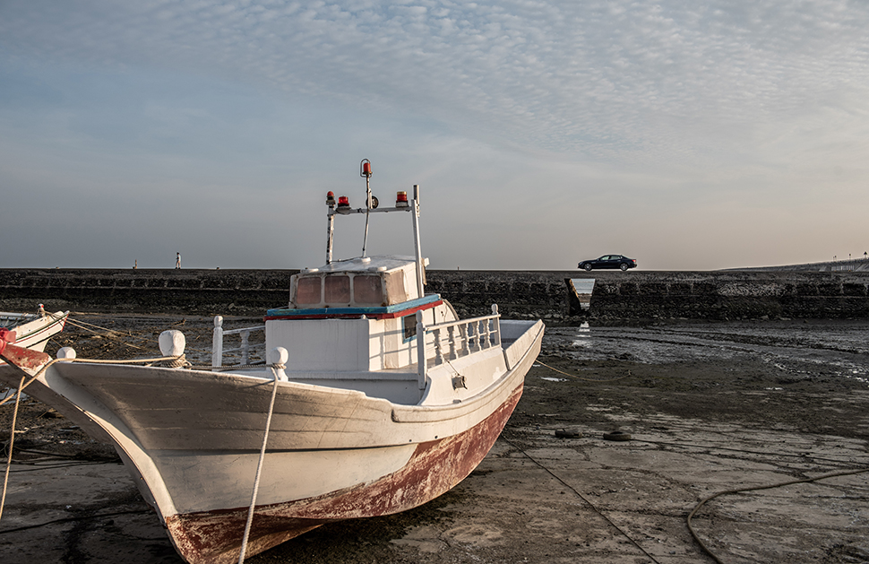 回程路線在地圖上乍看好像幾分鐘就能回到家,但這段路其實一點都不短,我們在途中遇見夕陽西下的景色,面對一望無際的蔚藍大海、點點漁船及海岸線構成的輪廓,如此低沉色調對攝影師而言是絕對難以抵抗的最佳時機,儘管眼看集合時間一分一秒逼近,但還是忍不住停下車再拍個幾張。在這裡,每一個風景、每一個事物及人,都有著自己的故事。