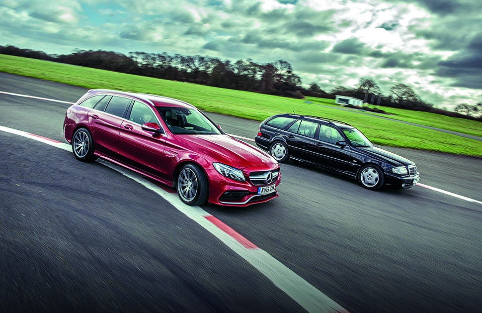 幸好賓士一直堅持開發桀驁難馴的旅行車,截至目前已連續推出四代C-Class AMG旅行車,這裡所見的正是最舊和最新兩代。撇開配備3.6升直六的1995年W202 C36 AMG和改良前使用機械增壓3.2 V6的W203 C32 AMG,這些C-Class旅行車皆以八汽缸為本(為免節外生枝,這些例外姑且就此輕輕帶過)。