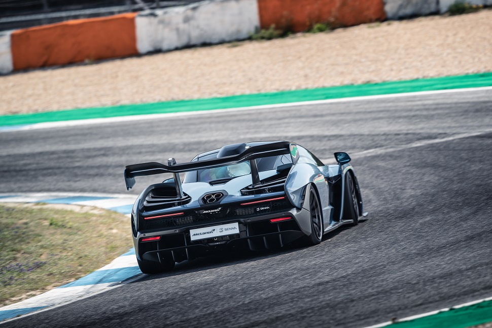 要大家穿上全套賽車服,安全帽還必須搭配HANS,廠家如此慎重絕非裝裝樣子,而是它們清楚這部洗拿的本事有多高強,為了先惦惦每位上車的記者身手如何,特別先準備720S讓大夥熟悉賽道也順便由教練來場隨堂考,藉此了解誰需嚴加看管,誰可以自由放生,雖然我以前在學校的成績向來墊底,但還算乖寶寶一名,Rob(我的隨車教練)可是一直對我讚譽有佳呢。跟Senna相較下,原本風流倜儻的720S頓時氣勢矮了一截,不過也因為這個安排,讓我在跳上Senna時不至於手忙腳亂,要知道廠家為了讓我們明確感受720S與Senna的性能差異,兩個回合各六圈的Senna體驗都直接點選Racing模式搭配ESP Dynamic的嗆辣組合,你想想,後輪驅動、1198kg車重加上迅如閃電的800匹渦輪動力,接下來除了要仰賴不時在耳際耐心提點的Rob之外,其他一切就只靠我自己了(賣身契已簽,後果自負)。
