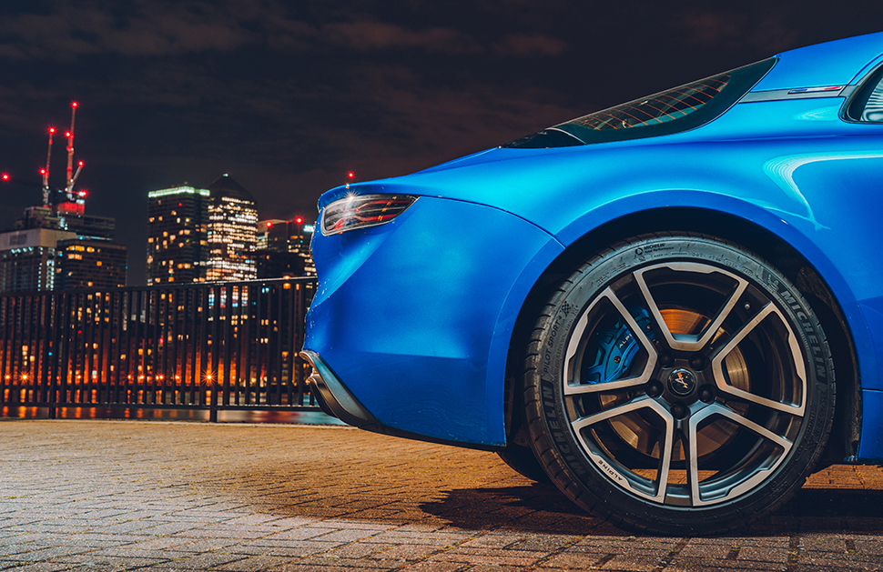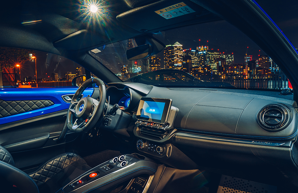 不過在此之前,請容許我們先行交代一些數字。這次測試的A110屬於法國規格,不但是第一部踏足英國的Alpine,更是五日內售罄的1,955部Premiere版本之一,51,805英鎊標價非同小可(日後會推出相對廉宜的Pure和Legende版本),擺明衝著保時捷Cayman S而來,不過後者可以選配手動變速箱(Alpine沒有這個選項),動力又明顯高了一截(保時捷一方有345hp,Alpine是249hp)。話雖如此,火力強弱其實未至於一面倒,因為Alpine比Cayman S輕許多(1,103kg和1,430kg之別),是以雙方的0-100km/h加速時間幾乎一樣(分別是4.5和4.6秒)。此外,Alpine耗油量也較低(6.1L/100km對8.0L),標準裝備也因為份屬Premiere版本而較為豐富,Cayman買家得再花幾千英鎊才能達到同一配備水準。