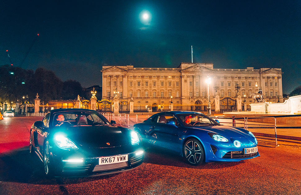 我們現已踏上征途,從東面到西邊的路線將會經過多條隧道和迴旋處,途中少不了會碰上突然出現的狐狸和路面坑洞。一邊領略這些跑車的一呼一吸,一邊以十倍速度掠過平常得花上五個小時才能通過的空曠街道,正好提醒我們這些跑車雖然善於在高山坳道耀武揚威,其實在需要迅速變換方向、突然加速的市區中穿梭同樣合適,通過那些6呎6吋的車輛限寬閘時也用不著咬緊牙關。乘坐感覺也相當怡人,儘管道路受到冷似西伯利亞的英國寒冬蹂躪,兩部跑車猶能妥善應對。