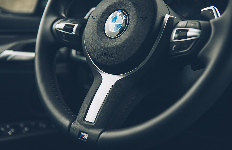 黑色車內頂棚、正碳纖維飾板,好樣的。不如就一直待在車上吧,這樣我便看不見它的後半截,掩耳盜鈴,豈不皆大歡喜。歲月不饒人,這支M款三幅方向盤現已略顯老態,不變的是握感依然出色,只是轉向回饋未免太也輕飄飄,在Comfort模式下幾無阻力,用意自然是好的,讓每個人都能輕鬆開大車,高速也會變得重手許多,只是個人還是比較喜歡陽剛點的寶馬啦。