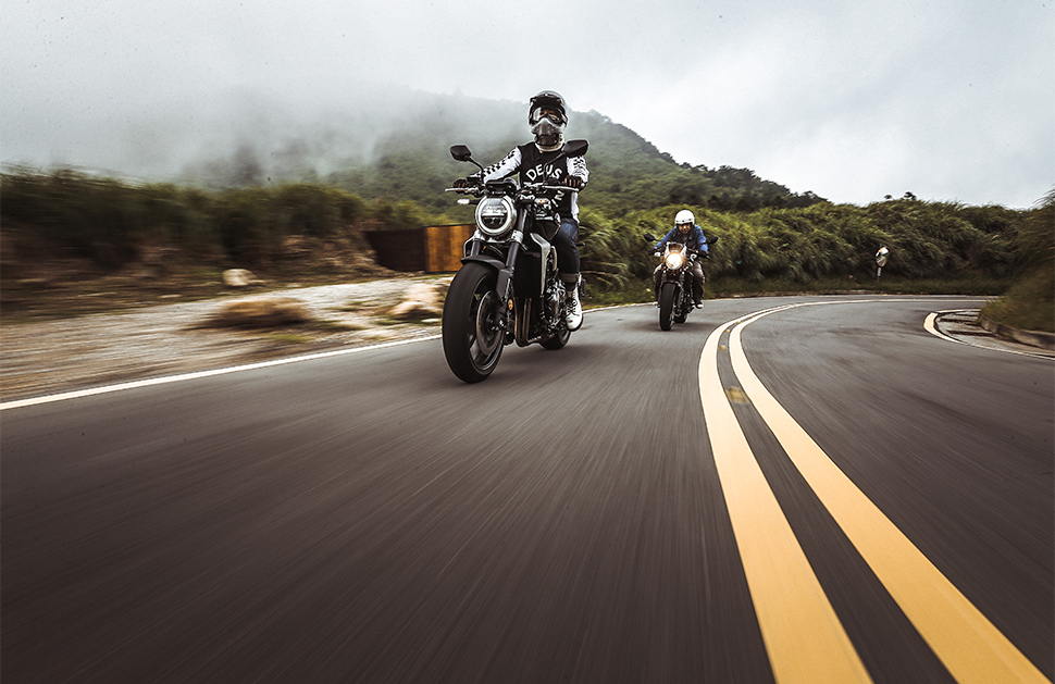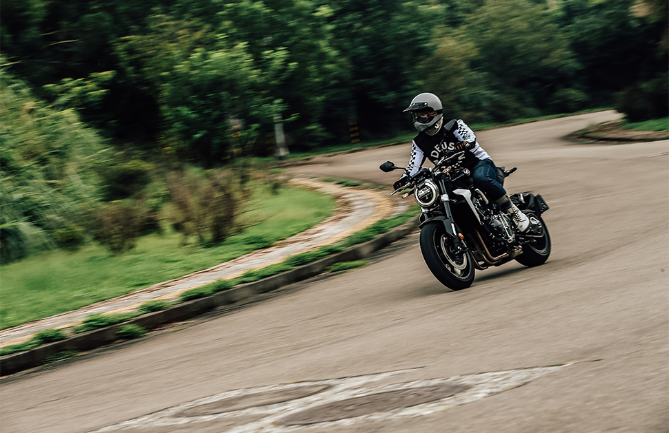 向CBR1000RR借來引擎一用,經過本田調教後更適合一般道路使用,而這粒998c.c.水冷雙凸輪軸四缸引擎,身懷145匹馬力(台版87匹)及10.6公斤米扭力(台版9公斤米),用上家族最夯的TbW 電控線傳油門結構,以及四段可調的動力模式設定及H.S.T.C.循跡控制系統傍身。話說人如其名車如其規,這句話應驗在CB1000R可一點都不含糊,強大的CBR1000RR引擎雖然已大量下修其輸出,裝載在CB1000R可說還是相當的兇猛無比,低轉起步猛烈之外,中高轉速則是四缸引擎的強處所在,而前Showa 43mm倒插避震及後Showa單槍中置設定,所帶來的穩定性已超出我輩認定運動街車的範疇,而三角騎姿更有種騎乘滑胎車的快感,本田此招一出相當壞心,告誡道上兄弟如遇此物須身懷三分戒心才是。