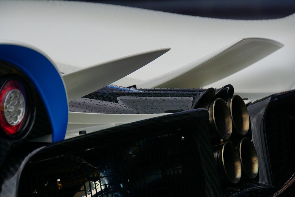 此外,現場還有另外三部Pagani Huayra Dinastia特別版,如果各位對兩年前在高雄服務中心所舉辦的帕加尼品牌發表會還有印象,Baxia 霸下與Yazi 睚眥曾來台展出。「九龍之首」─霸下Baxia有著騰龍彩繪,並以藍色碳纖維車身搭配搶眼的金色輪圈,充分展現奢華氣息。「九龍次子」─睚眥Yazi車上裝有PAGANI 暴風「Tempesta」套件,最顯著的特徵是其強化的排氣系統、輪圈和前後擾流裝置。而最新的鴟吻Chiwen,則彰顯Pagani的極致個性化定制,配備了車頂進氣口、特別定制的車身前後繞流及霸氣尾翼,處處展現超凡鋒芒。這三部特別版都已經全數完成交付。