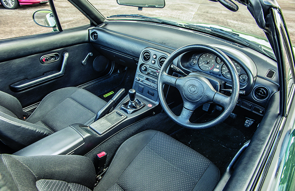 今天再次跟第一代MX-5共舞,令我忍不住嘖嘖稱奇,對Mazda貫徹理念一擊即中的眼光佩服得五體投地。那雙彈燈真可謂神來之筆(第二代MX-5鑑於撞擊安全法例不得不放棄這個設計,但我可以一口咬定,不為什麼地反覆升降頭燈,本身仍然是一件十分新奇有趣的事),不過其他動人之處,譬如爽脆有勁的粗短排檔桿、善於互動的轉向和敏銳油門反應,仍然予人妙不可言的通透感。加上體重只有950kg,你真的可以舞它一個龍飛鳳舞,絲毫不受討厭的慣性擺佈自得其樂。誠然,這部1996年款MX-5搭載的1.8公升140hp引擎談不上力量澎湃(零至一百8.1秒,極速203km/h),卻勝在天生渴求轉速,加上清風撲面來,速度感已夠你把三千煩惱絲拋諸腦後。