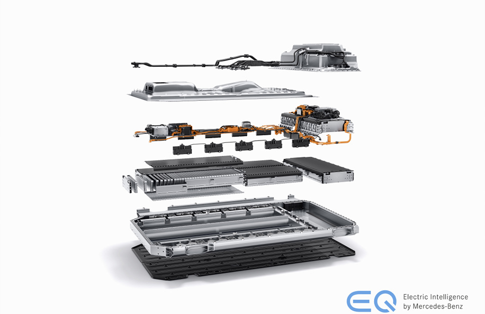 EQC配備了最新一代的鋰離子(Li-Ion)電池,作為前後馬達的能源,電池模組由384顆電池所組成,位於前後兩個車軸之間,電池系統採用模塊化設計,由兩個模塊組成,每個模塊有48個電池,每個模塊有72個電池,額定容量約為 218 Ah,能量含量為80 kWh(根據NEDC / WLTP),據官方規格表示,EQC 400的續航力可達450公里之遙。