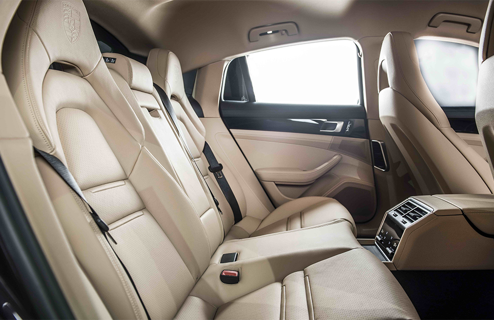 內艙部分,Panamera Exclusive選配了特殊的後座2+1舒適座椅,由外側2張獨立式座椅包覆中間的第3座位形成特殊的 2+1後座配置,採 4/2/4分離式設計的後座椅背具備可傾倒功能,進一步讓後座空間更具使用彈性。