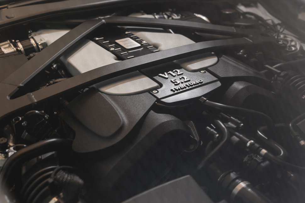 獨特的六角形蜂窩狀水箱護罩也是DBS Superleggera攫抓視線的焦點,六角形結構層次感十足,亦可使前隔柵通過大量氣體,有助於高速行駛的穩定性。動力採用5.2升V12渦輪增壓引擎,並置於靠後且較低的位置,提供完美的前後重量分配,最大馬力725hp並擁有0~100km/h加速3.4秒的狂暴性能,最高極速可達340km/h,加上受惠於後置ZF八速手自排變速箱,搭配機械限滑差速器及向量扭力分配系統,讓駕駛者在面對如此強勁的動力設定時,仍能享受靈活自如的操駕樂趣。另外來自F1之雙層車尾擴散器,可以產生大於180公斤的下壓力,讓車身在強大動能的催使下還能擁有絕佳的穩定舒適駕馭體驗。