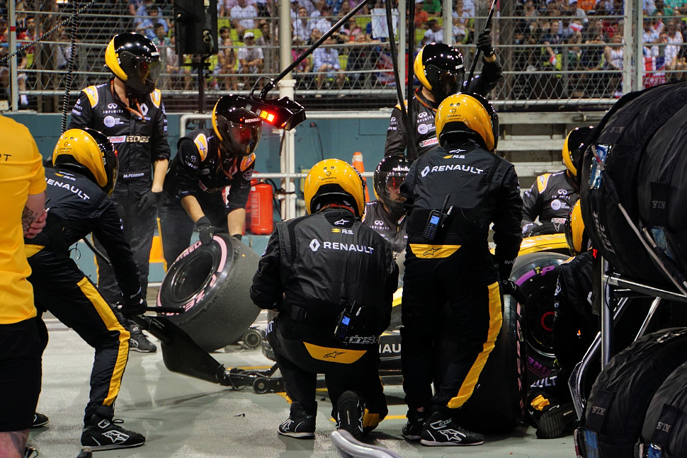 這次採訪雷諾車隊是F1賽場上知名的奪冠勁旅,早在1977年就已經投入這項賽事,於1983年作為F1賽車引擎供應商至今已拿下133場分站冠軍,並於三年前決定擴大參賽規模成為F1車隊,這隻披上黃衫的隊伍在角色轉換過程中雖然一路走來艱辛,不過這次採訪也讓我發現過去並未察覺到的另一面,或許這兩年戰績算不上突出,但全隊上下一心的投入程度超乎想像,從賽前準備到決賽,包含領隊Alan Prost(前F1世界冠軍車手)到更換輪胎的技師,看不到任何懈怠的跡象,百分百專注,即便每個人看起來都已是身經百戰的老手,但時間一到所有人立即起身照表操課進行換胎練習,每次必須在3秒鐘時間內拆換四顆輪胎,如此倉促時間所依靠的已經不是訣竅,而是不斷的反覆練習讓身體以直覺反射動作才有辦法完成,只要稍微有個差池或多個零點幾秒,排名順位就可能出現變化,以這次新加坡站決賽最快均速178km/h換算,每0.1秒的行駛距離約為4.94公尺,已超過一個車身的距離,這就已足夠改變整個戰局。