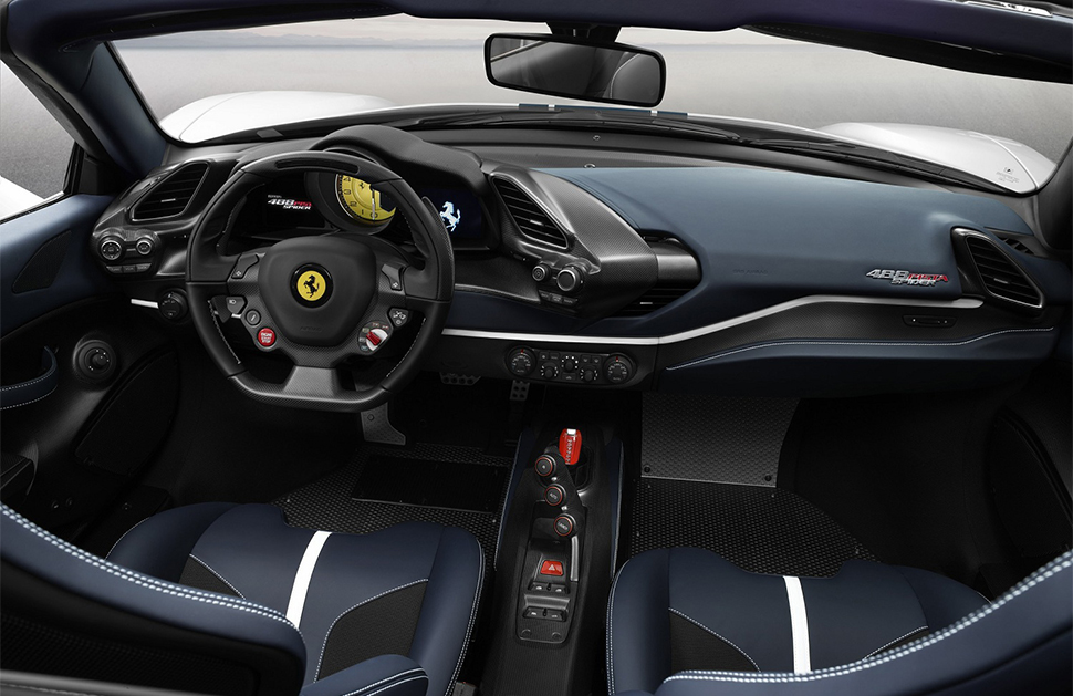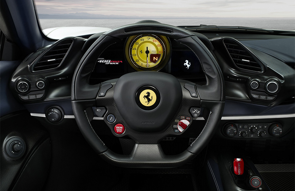 至於內艙,Ferrari 488 Pista Spider內裝設計簡約,例如隨處可見的碳纖維和Alcantara等輕量化、獨家技術的材料,配上法拉利得天獨厚的義式工藝,充分釋出法拉利內室所特有的迷人風範。另外,無論是手工縫製的撞色花紋板,還是三角形圖案的鋁合金跟拖板,亦或是精心雕琢的門板,所有這些細節已清楚詮釋法拉利的設計語言。