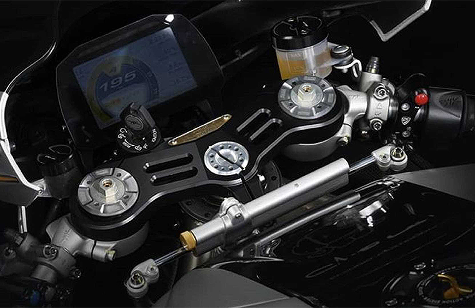 以Castiglioni命名的最新F4更加狂野,它的所有車身用上碳纖維打造,以及鋁圈則由BST提供,下盤部分,煞車及懸吊則是配備了Brembo Stylema和Ohlins,引擎則不計成本採用鈦連桿結構,重新調教平衡及針對曲軸輕量化,改良的進氣結合鈦金屬SC排氣系統,街道版本則來到205匹馬力。