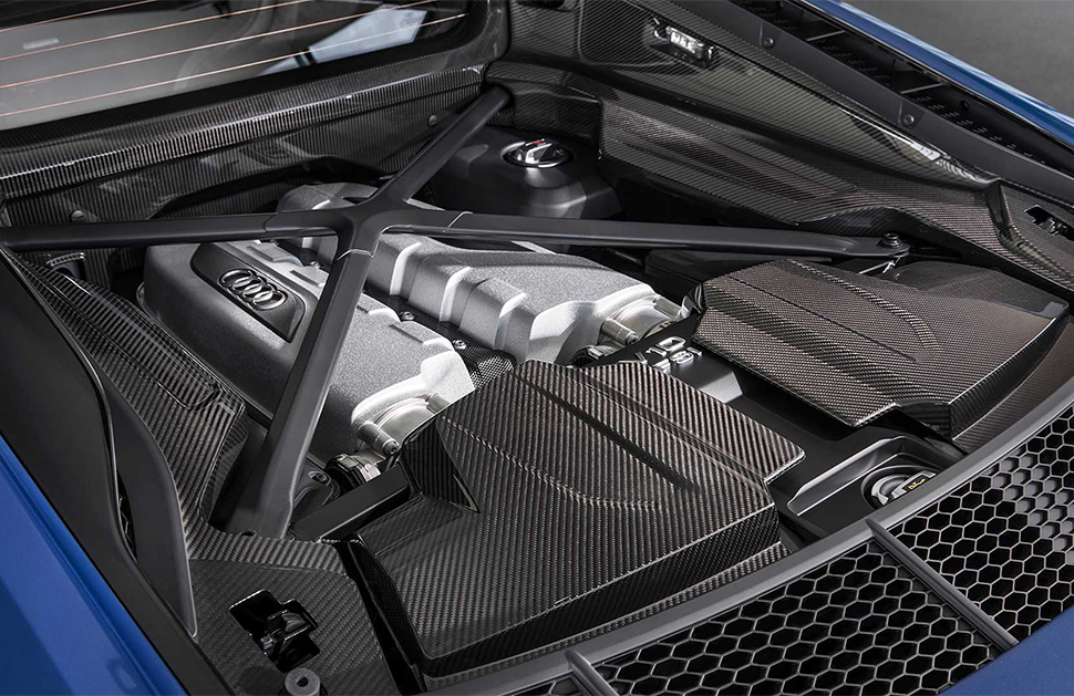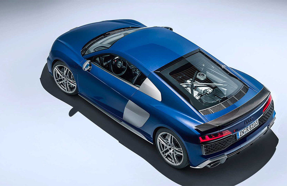 標準版的R8用上一具5.2升V10自然進氣引擎,預計可輸出562匹馬力和56.1公斤米扭力,跟舊款相較之下提高了30匹馬力和1.06公斤米扭力,零至百公里只消3.4秒內打完收工。極速則來到每小時324公里之多。