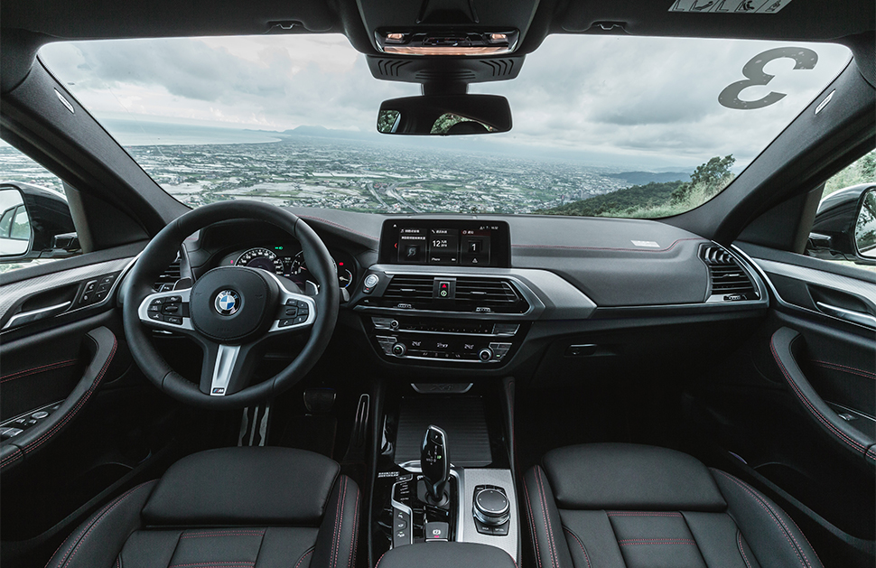 內艙幾乎是向X3借來一用,而寶馬一直為人詬病的內裝質感早在近年來煙消雲散,中央鞍座大量用上X家族特有六角設計,雖然不是頂規的M40i版本,內裏用料卻已跟上次一會的X3 M40i差異不大,不滿足尚有Sensatec皮質儀表可供參考。X4 xDrive30i M Sport用上較大的10.25吋中控螢幕,較為可惜的是,X4依舊用上iDrive 6.0而非最新的iDrive 7.0,概是寶馬這次被賓士紮實擺了一道,不時提醒X4內建BMW Connected功能,強調幾個相當方便的功能,可藉由自身載具遠端啟動車輛、預先空調開啟、遠端上鎖解鎖,甚至還可以遠端觀測車輛油量,並且可在上車前預先設定好車內導航,雖說寶馬在語音控制尚未跟上賓士一途,但相信迫於情勢之下,再過不久便可說聲嘿BMW~