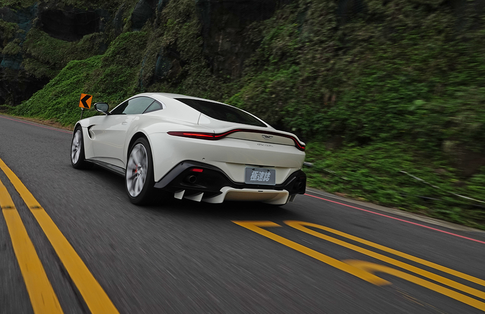 放在後頭的變速箱是造就Vantage與與駕駛者之間始終維持良好溝通的秘密武器,前後50:50配重加上20吋起跳的大尺碼跑胎(前255/40/20、後295/35/20),跑起來就像軌道車般的穩定,彎心並不會感受到突來的慣性或擺動,方向盤轉動幅度幾乎都維持在45度以內,其他只靠油門與煞車就能讓車頭輕鬆對準出彎點,即便殺入大角度急彎前輪也不會輕易屈服,這時候,恰好我在對的時間開到一條對的路,於是原本抱持的理性和拘謹被甩到一旁,手與腳展現潛意識中的本能,開始加速……