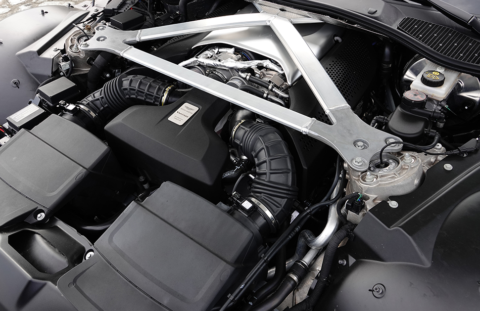 功夫相當老練的底盤面對國內特有的路況反而讓我看到它韌性的一面,Vantage的懸吊軟硬跟動力模式選項是分開獨立操作的,讓駕駛者有更多選擇去因應環境的變化,我始終覺得將動力及懸吊模式綁在單一個按鈕選項是不對的,跑車本來就應該讓駕駛者擁有更多主控權,而不是全交給電腦。Sport模式的避震器設定恰到好處,可以過濾掉一些沒有必要的彈跳,處理坑洞與顛簸路面的功夫也比預期要好的多,僅1,530kg車重在彎路間既平穩又淡定,完全無須繃緊神經緊握方向盤,而且配上由DB11修改而來的底盤及雙A臂懸吊(有70%部位已經過重新設計),讓Vantage具備輕盈靈活的體態,加上這次還將E-Diff電子式差速器列為標配,左右輪動力分配只要幾毫秒的反應時間比機械式LSD更快,每次殺彎都讓我信心滿滿。